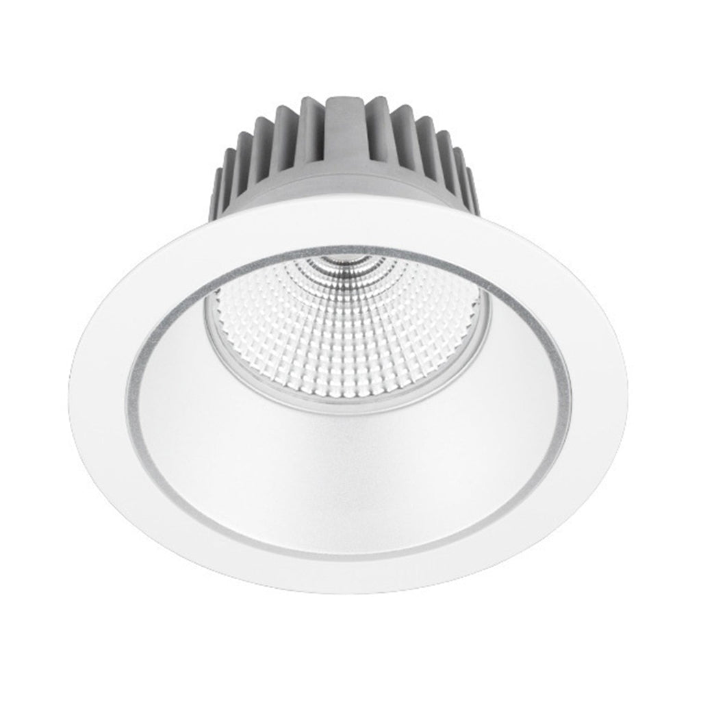 25W Recessed fixed LED downlight range with dual reflector design to produce a low UGR rating of <19. Available in 3000K and 4000K colour temperature options. Large pressure cast aluminium heatsink provides effective thermal management ensuring high output and long lifespan. Supplied with remote driver.