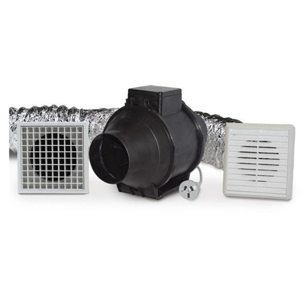 Includes RIL-100 (100mm in-line duct fan), 4m duct, internal & external grilles.