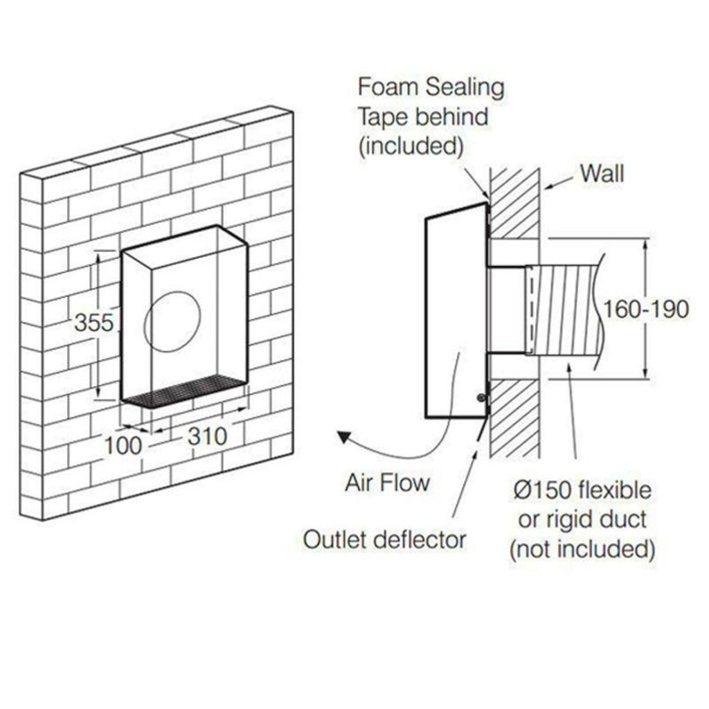 Exterior surface mounted fan that is very powerful and easy to install. Ideal for downstairs toilets, laundries and kitchens, or retro tting an existing in-line fan system. Connects to 150mm diameter duct.