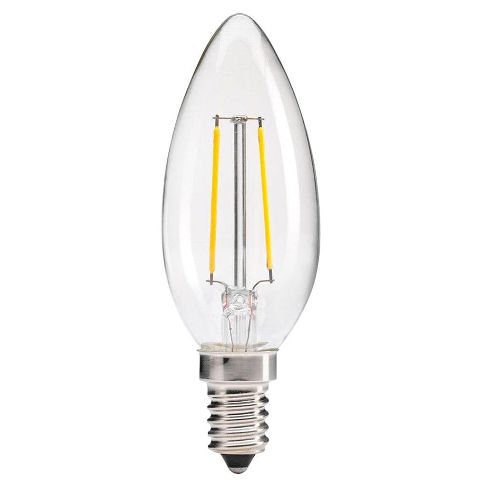 Filament Candle Clear LED Globes 2w 2700k Dimmable