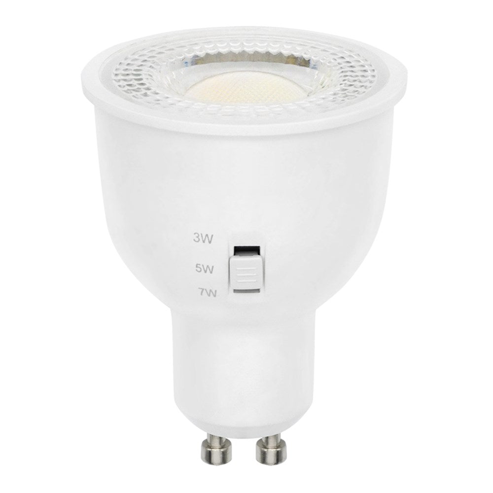 Dimmable, 7W GU10 LED lamp with selectable power and CCT