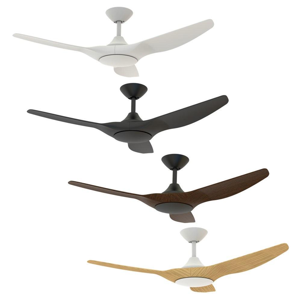 The STRIKE DC Ceiling Fan Series is a modern and slimline ceiling fan design that offers a slender and simplistic look which will suit most decors. Available in a 3 Blade 48” 1220mm blade length or 3 Blade 60” 1520mm blade length with the choice of an 18W LED CCT Switchable light Kit as an optional accessory if a light option is required. Choose from 3000K Warm White, 4000K Neutral White or 5000K White via the remote control. The remote control also features a 9-speed function and fan timer and reverse Winter/Summer mode included. Optional Light Kit is fully dimmable via remote control.  Available in a range of colour options: choose from White, Black, Black/Walnut and White/Oak finishes.