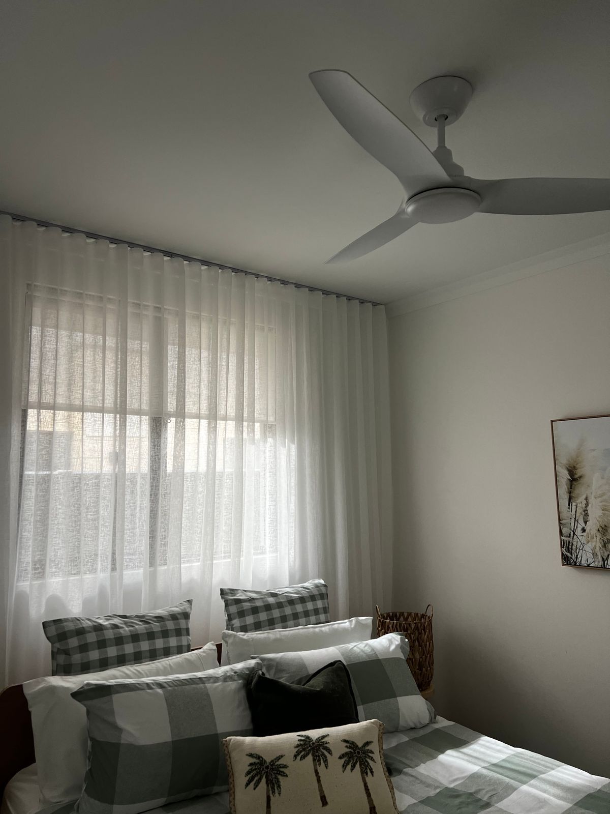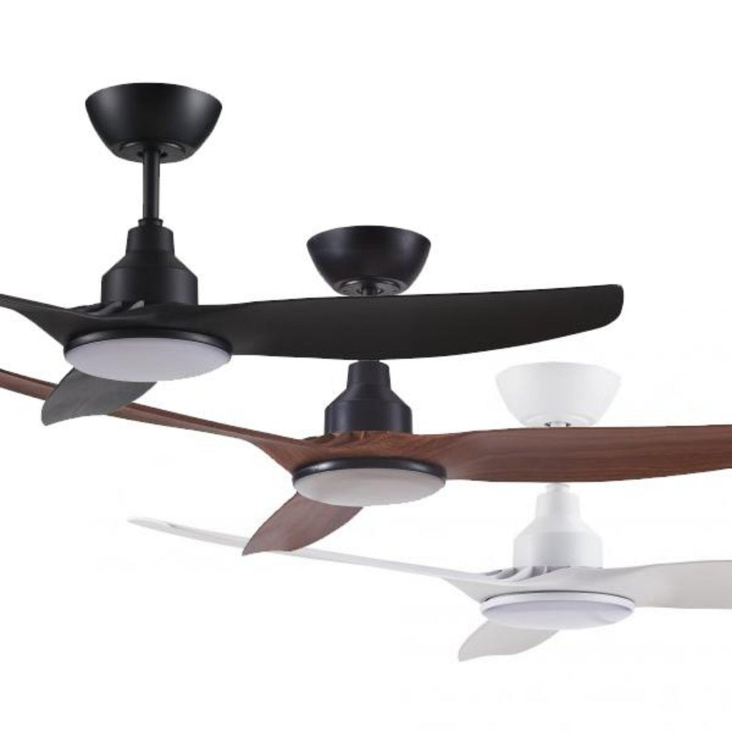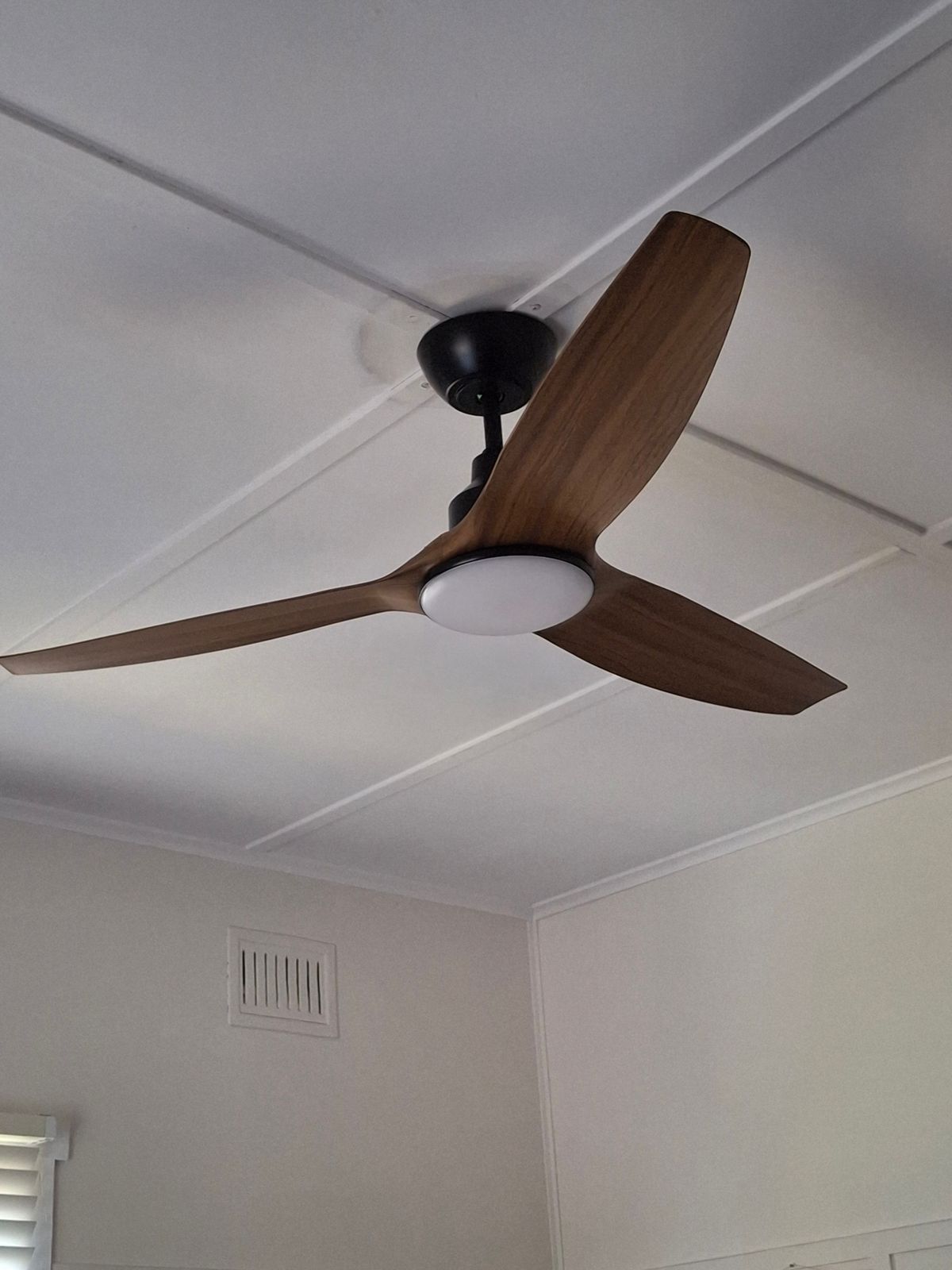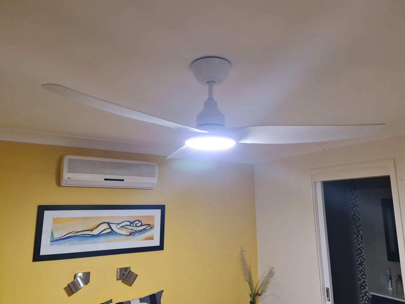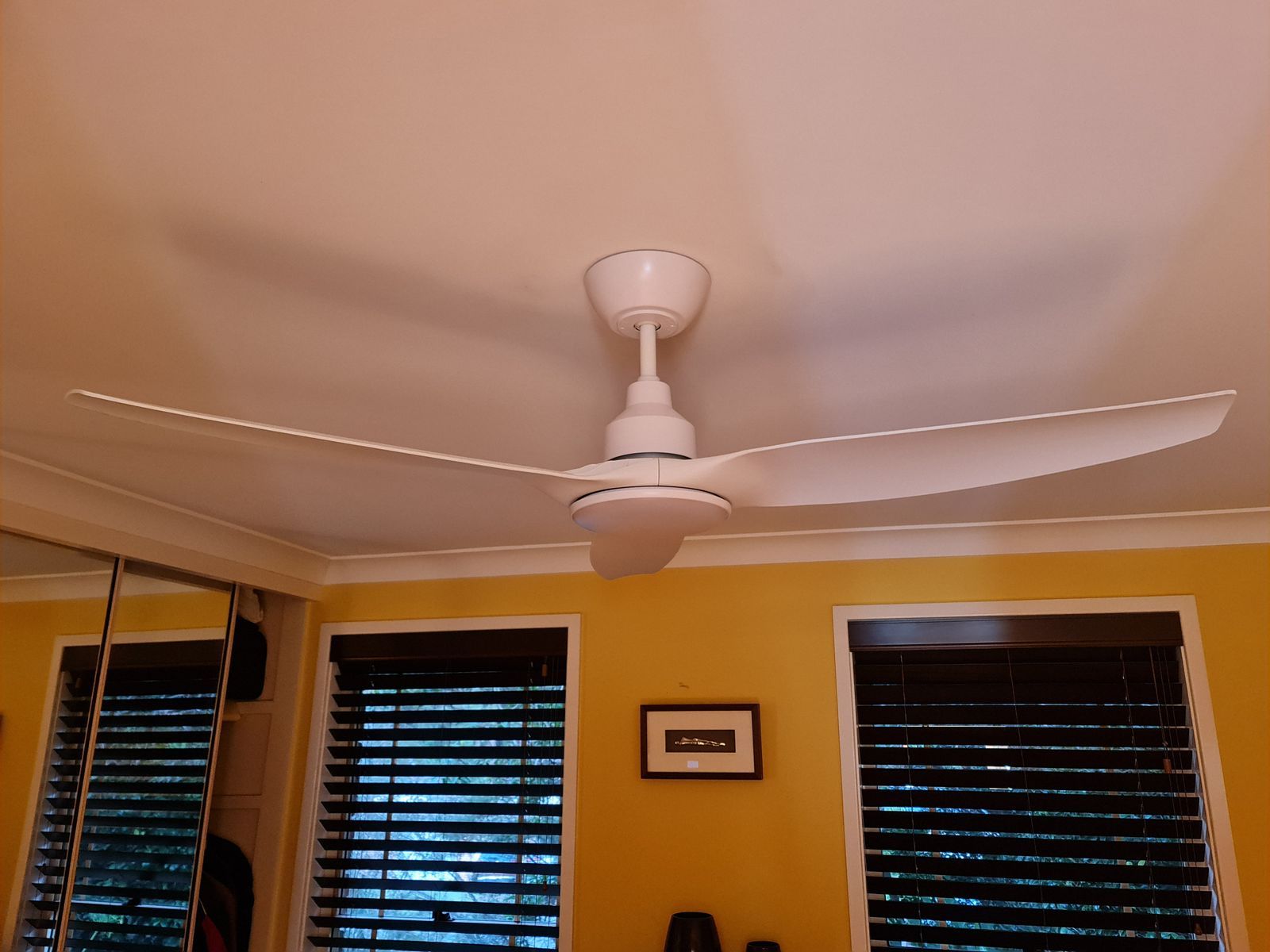 I bought 3 of these skyfans & there is no difference between the performance ...they are all whisper quiet ...circulate heaps of air flow ...low running cost ...& super efficient ...rarely need them on high ...& remote dimms the lights ...& also isolates the lights separately from the fan...highly recommend this eco fan