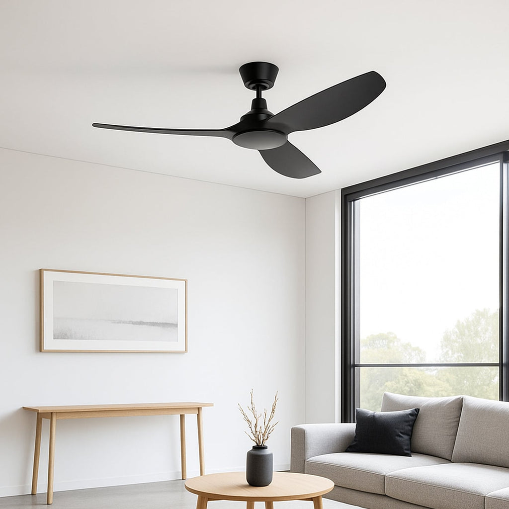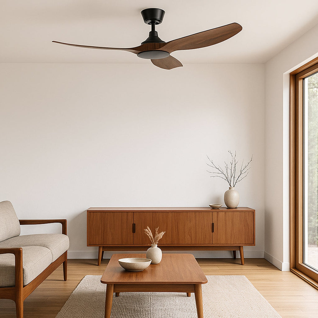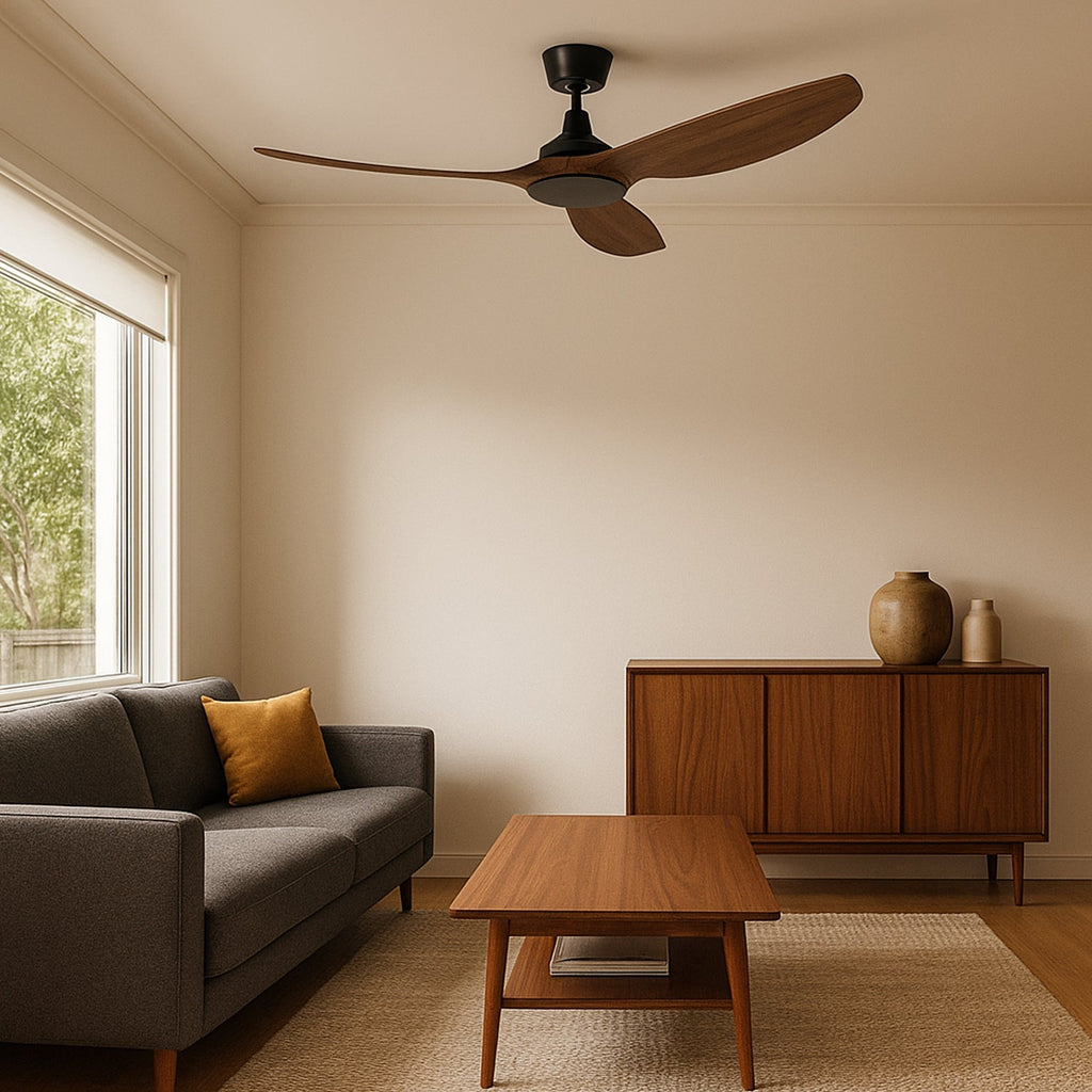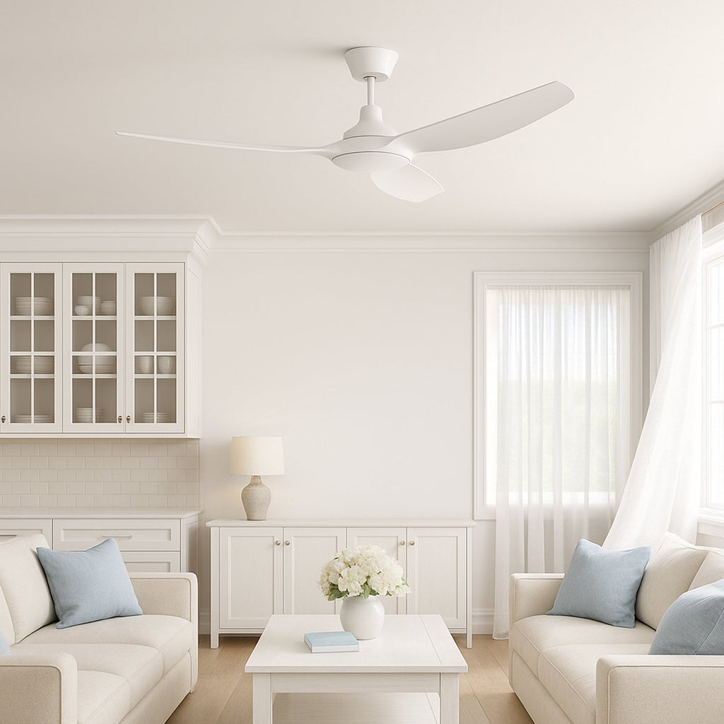 Designed for performance and style, this 1320mm ceiling fan moves up to 10,600m³/hr of air while using just 35W. The non-rusting ABS blades and quiet DC motor ensure long-lasting, reliable operation with effortless control via remote. With 6-speed remote control and summer/winter reverse setting, it delivers powerful airflow and year-round comfort. Available in three colours: White, Black, and Dark Timber.