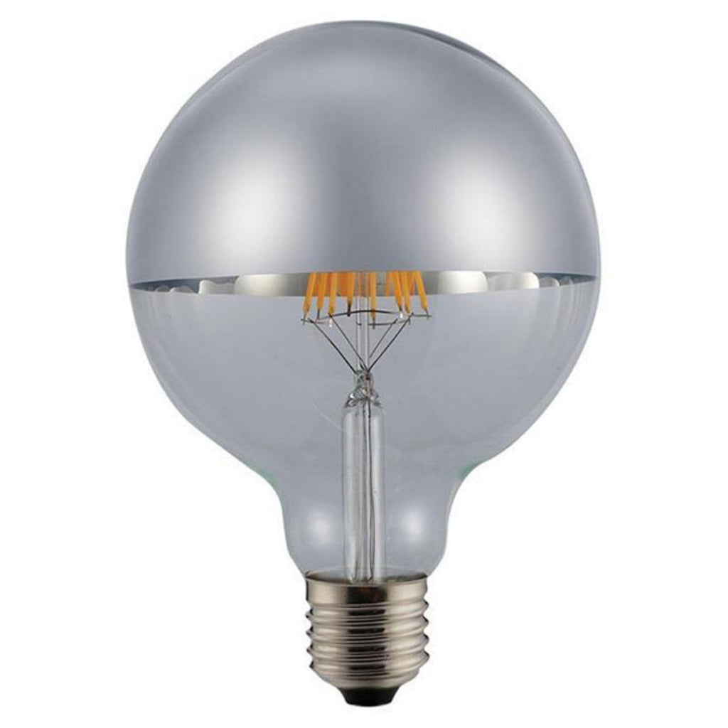Retro styled Crown-Silver LED decorative globe. Spherical G95 is ideal for use in open pendants or table lamps. The crown is designed to reflect the light back towards the light fixture itself. 6W E27 2700K (warm tones).