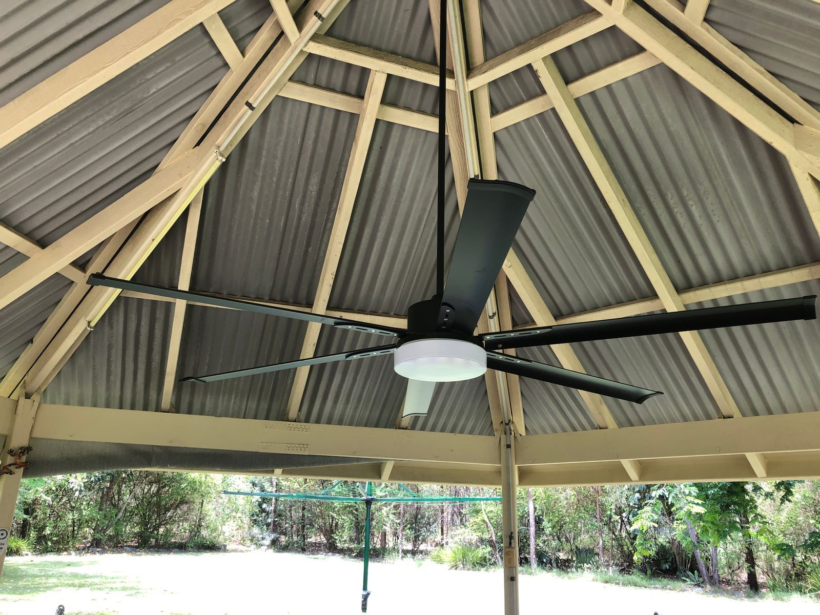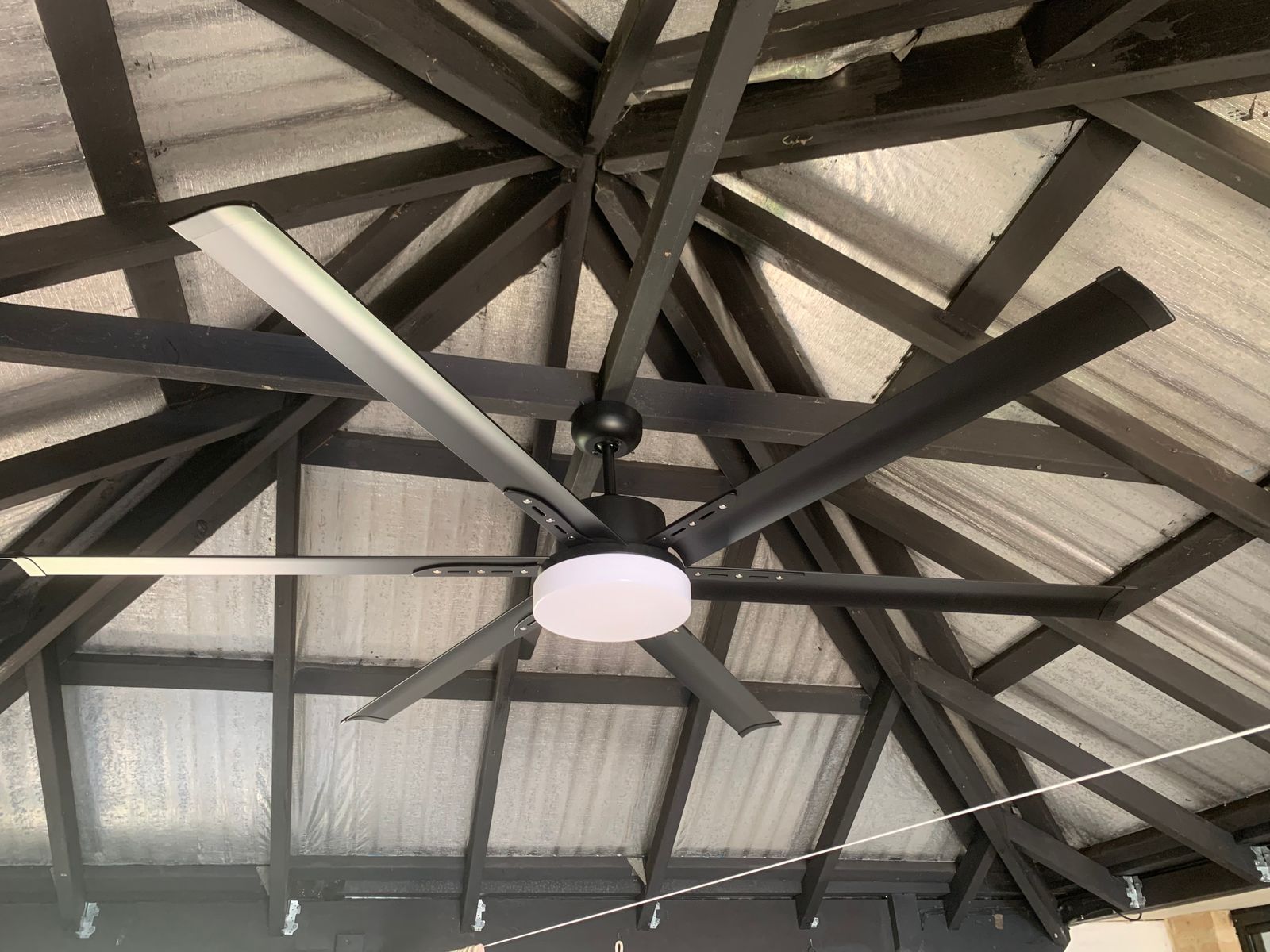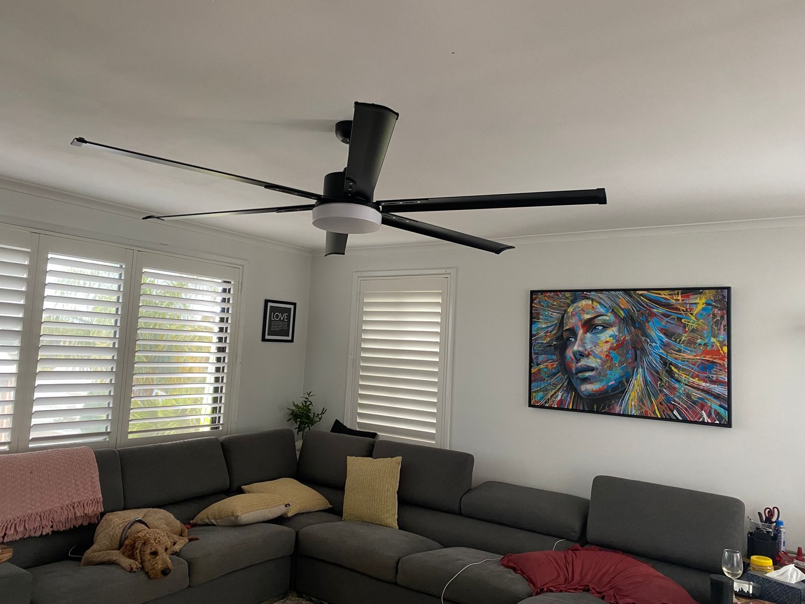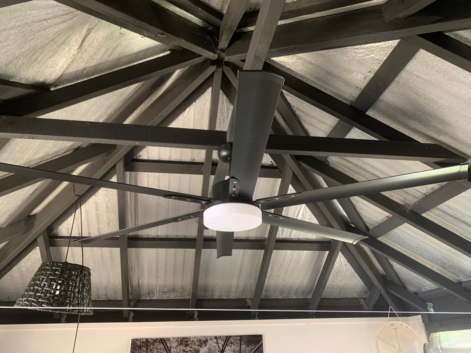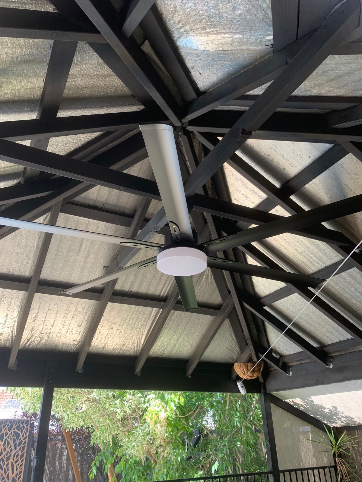A beautiful design that has made our two large outdoor areas an inviting area. The wind speed is exactly what we wanted. We love that we can dim the lights and have it on a timer too! Very very happy with our purchase after it was a bit of a risk ordering such a pricey product online.