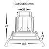 • Cut Out: ø75mm