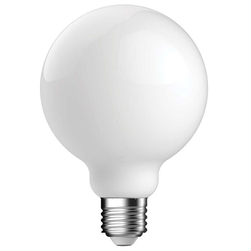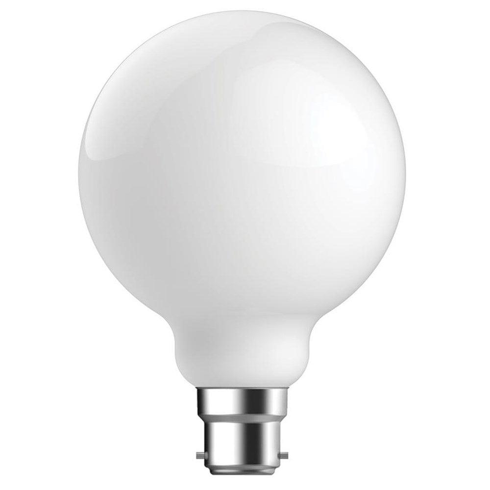7.5w spherical classic vintage globe, G95 shape. Available in ES (E27) and BC (B22) base options. Available in 2700K (Warm white) and 6500K (Daylight) LED colour temperature option. Frost glass. Fully dimmable with suitable dimmers.