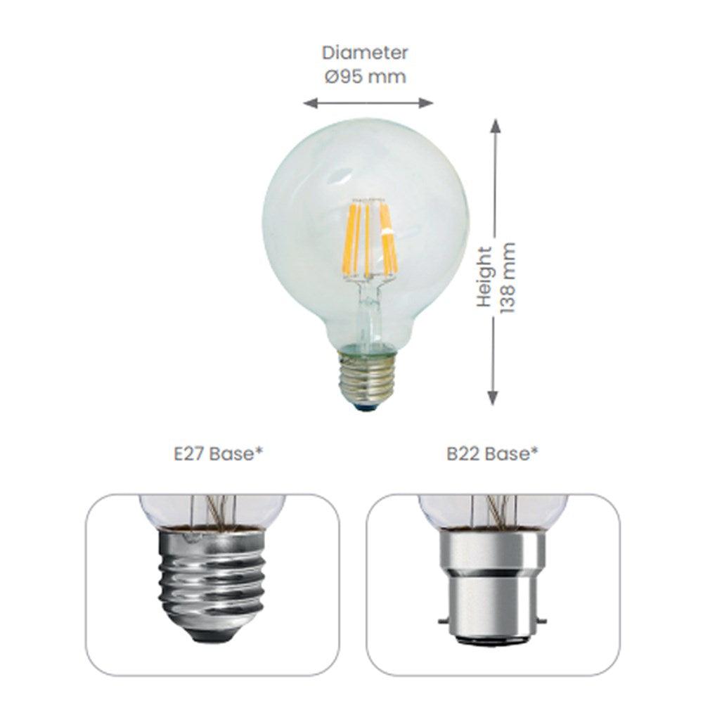8w LED B22, E27 G95 Globe Warm White 3000k LEDG95B228W, LEDG95E278W Dimmable