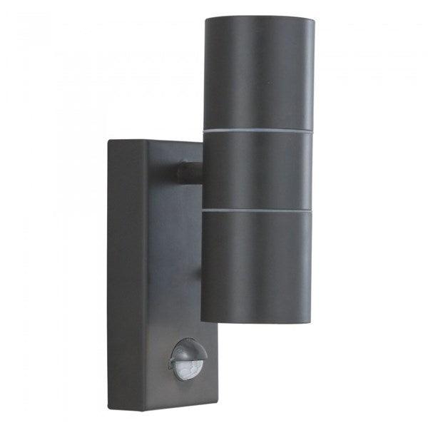 Abel Outdoor Up & Down Wall Pillar Light With Sensor 2Lt in Black