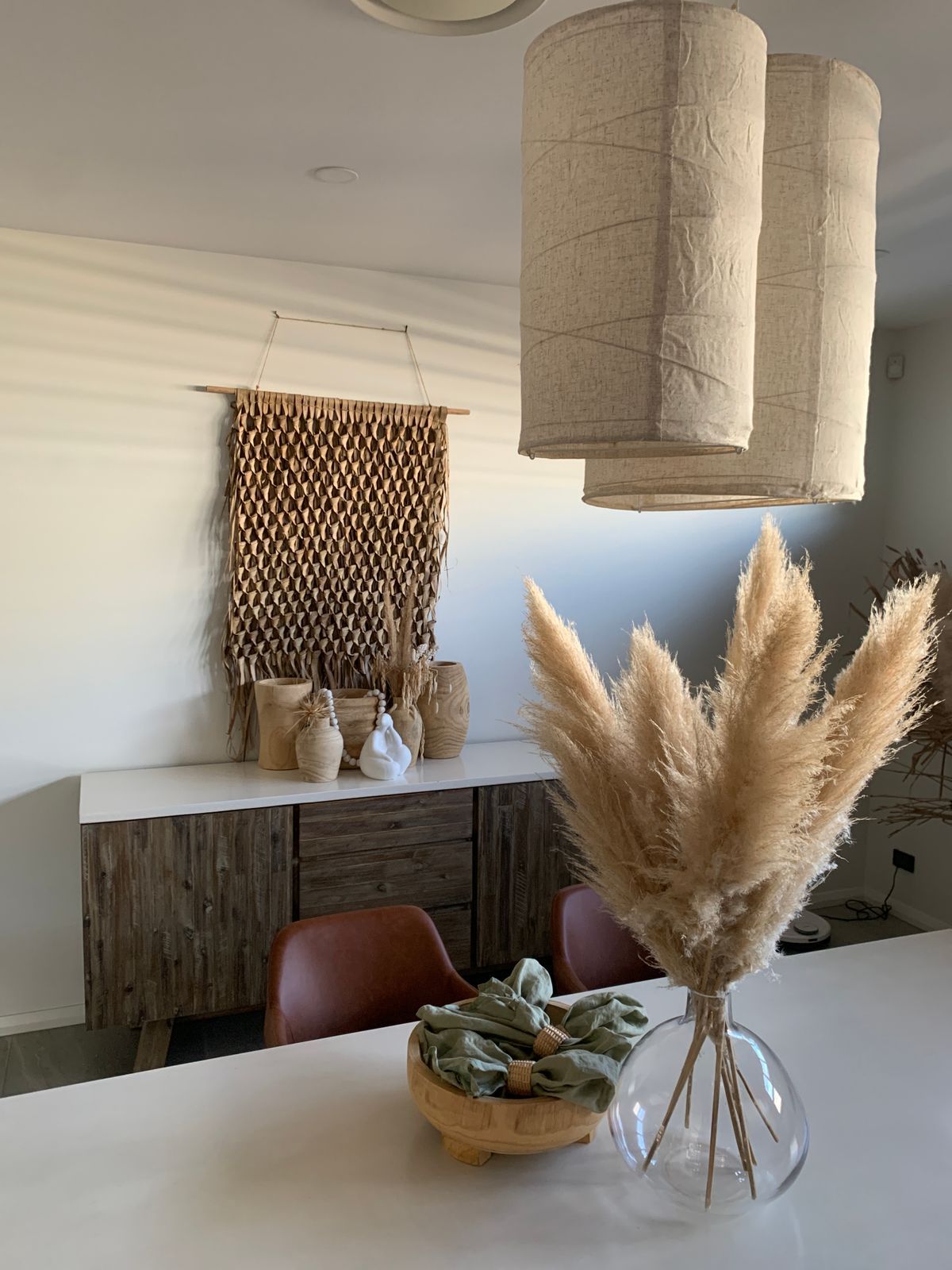 This earthy fabric shade will fit on most hanging cord sets, bringing a warm, natural light to any room. The flax coloured fabric is backed with spiraling cane ribs.
