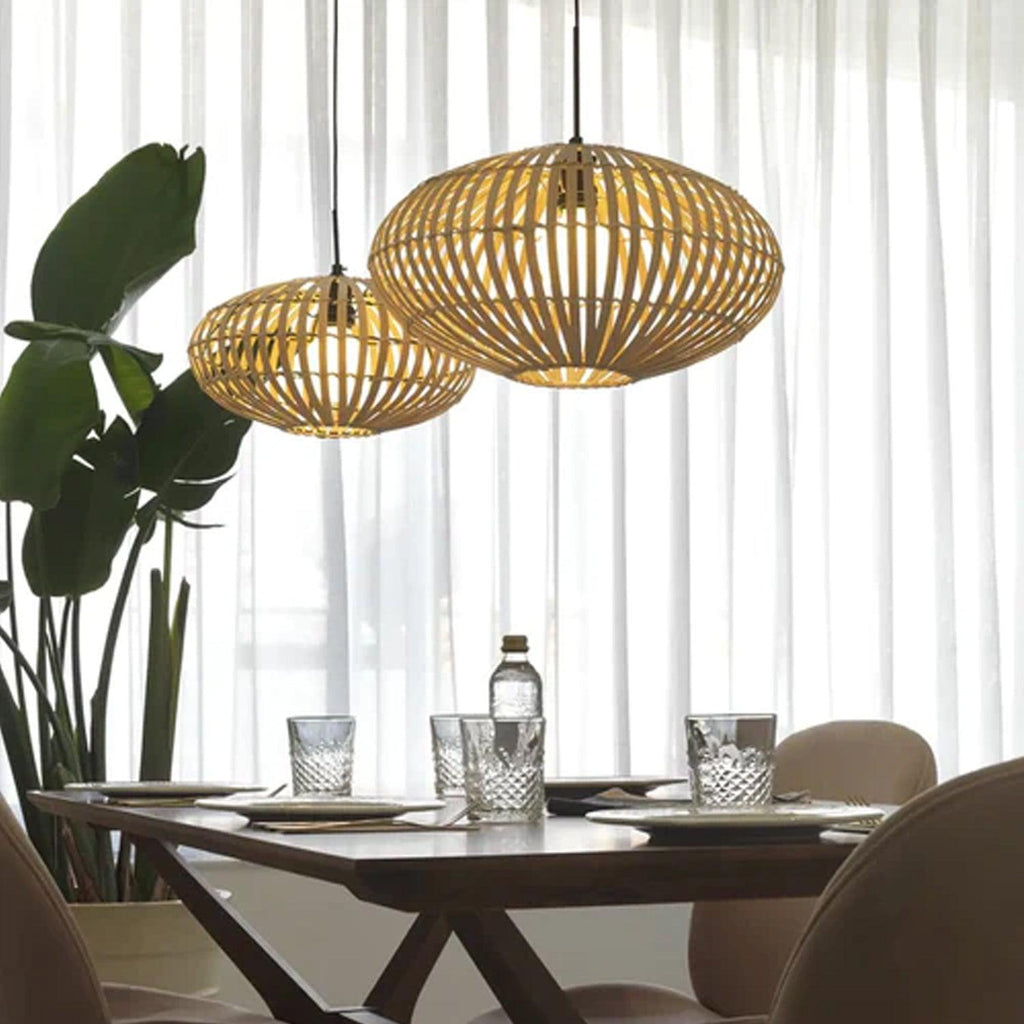 Anya Pendant Light Small/Large in Matt Black or Matt Brass w/ Natural Bamboo Shade
