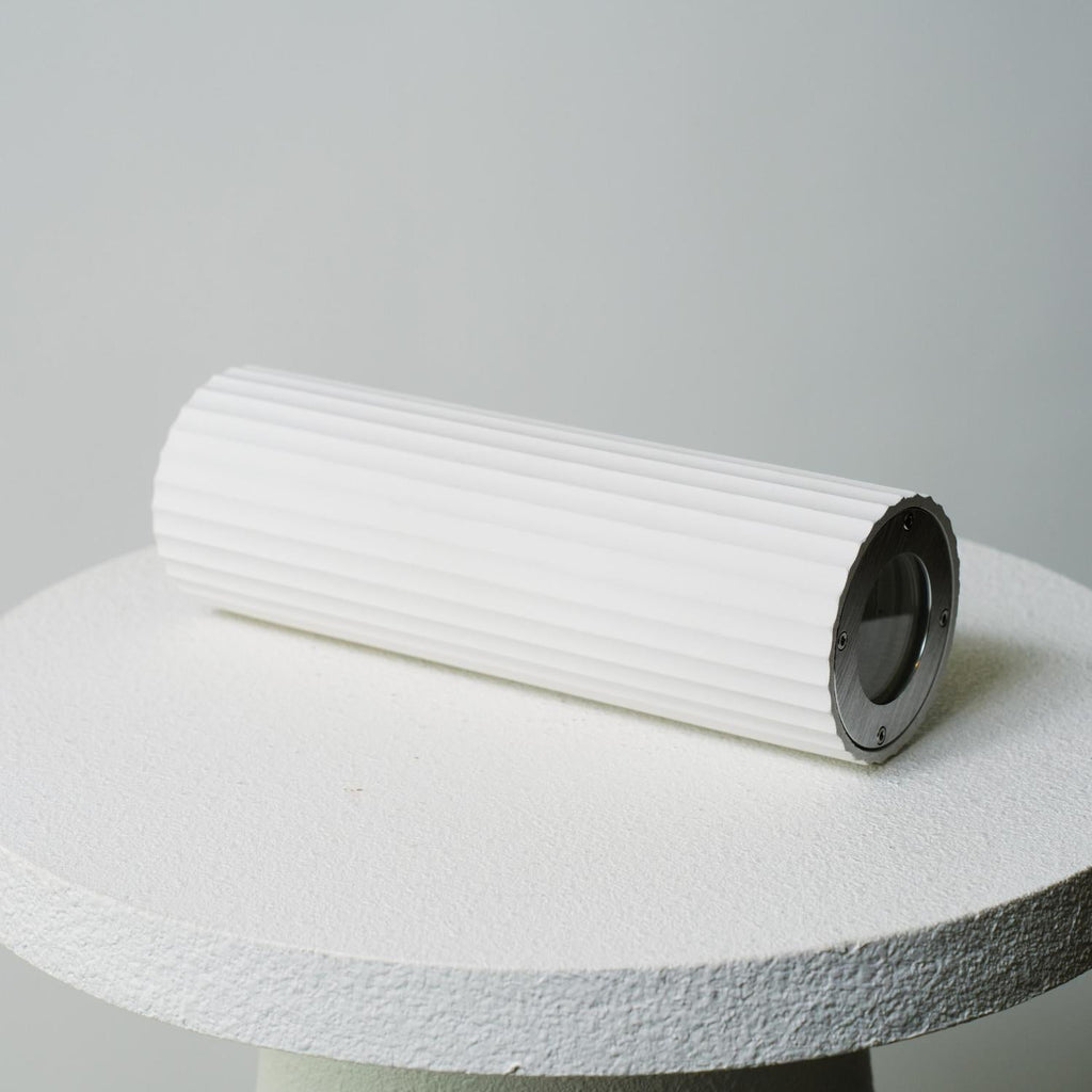 A bold interplay of texture and light, the Aurora collection turns architectural surfaces into sculptural moments. Cast from solid concrete with a refined matte white finish, its fluted cylindrical form celebrates material honesty while delivering focused, up-and-down illumination.