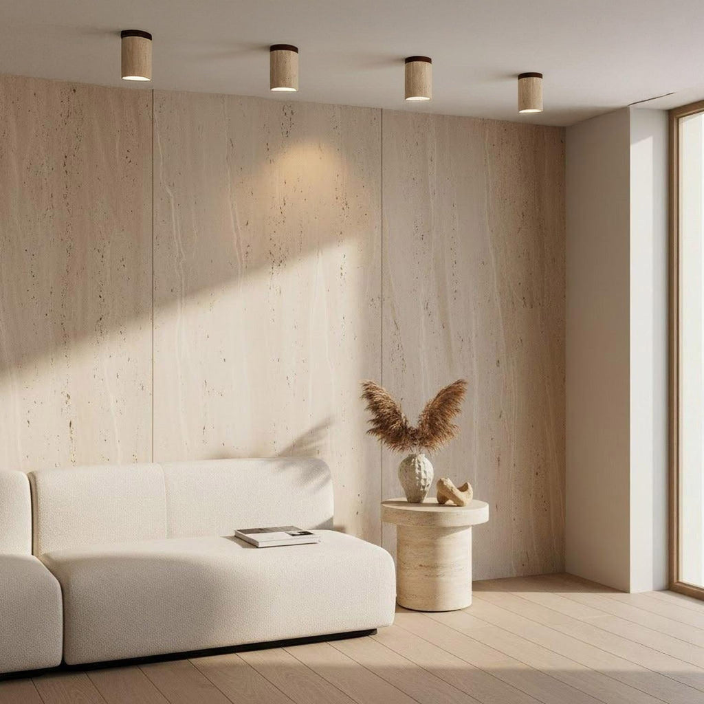 This surface-mounted downlight features an E27 fitting, allowing flexibility in bulb choice while preserving a clean, minimal aesthetic. The stone body and timber detail enhance ceiling textures, delivering timeless appeal in modern design environments.