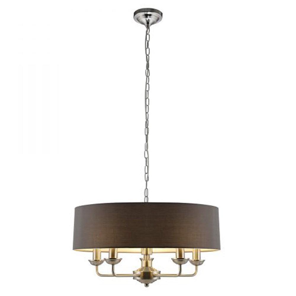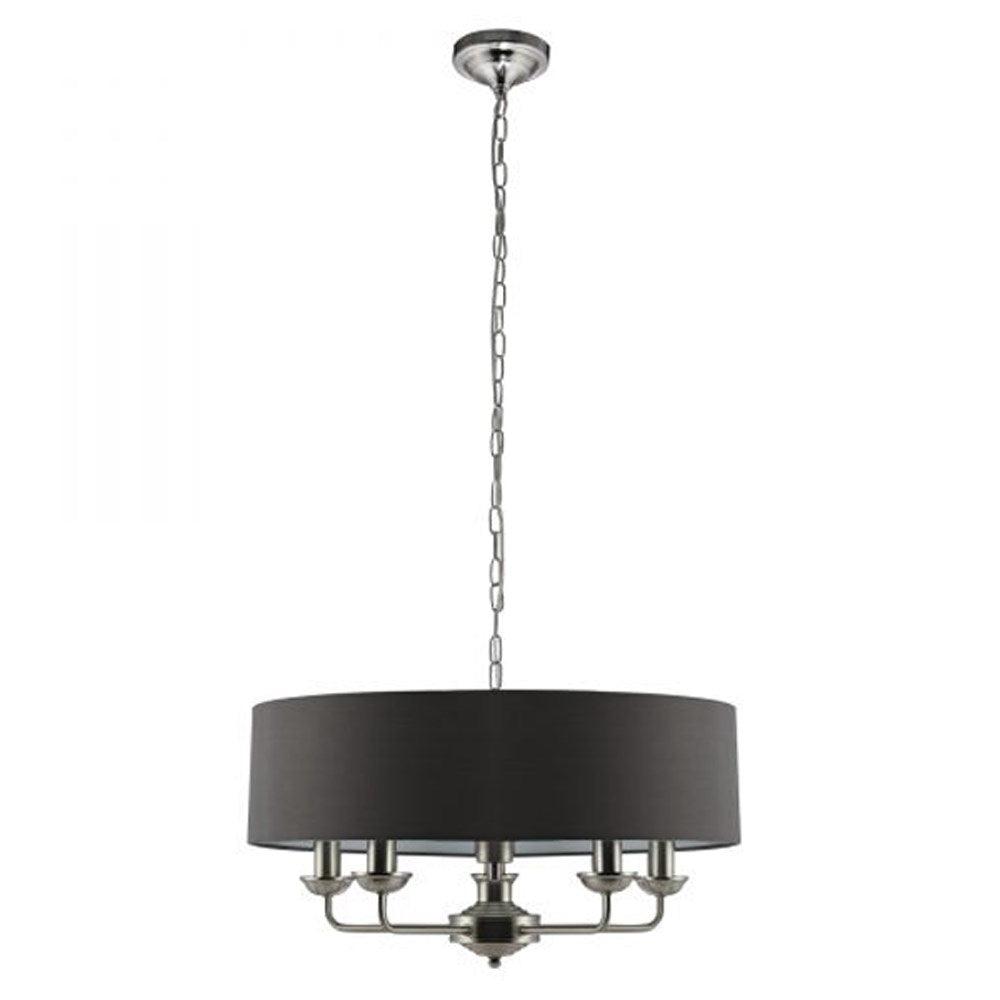 Beata Chandelier Large 5Lt in Satin Nickel/Grey Shade