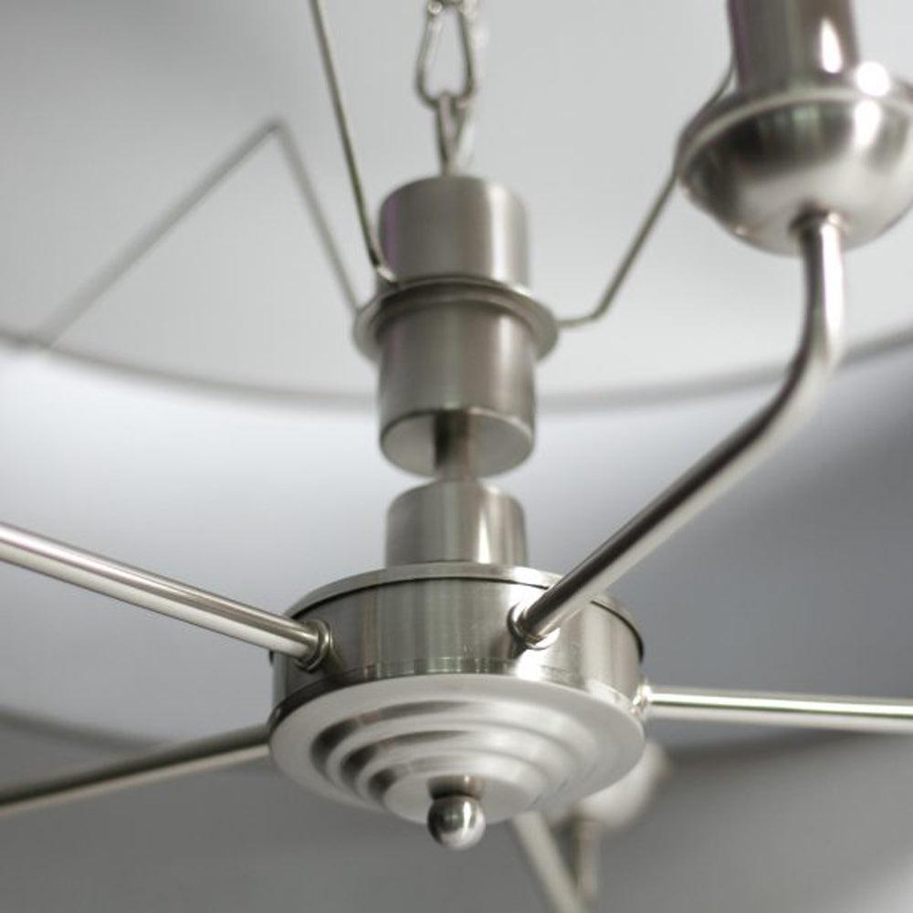 The Beata Chandelier Light is the very definition of modern luxury. Sleek lines balance the minimalistic feel with statement accents that draw inspiration for the extravagant chandeliers that came before it. The Satin Nickel metal is offset by the Grey Shade fabric offering ample light from its five-bulb capacity.