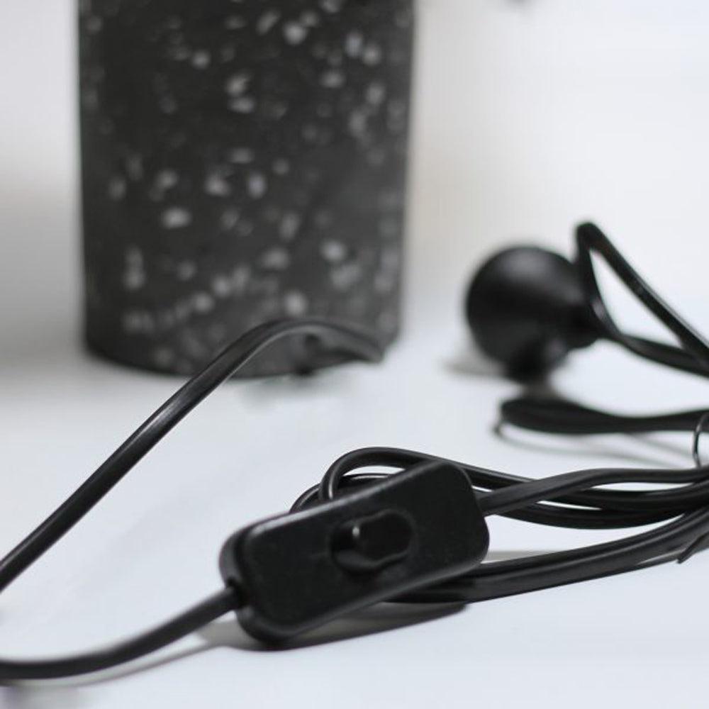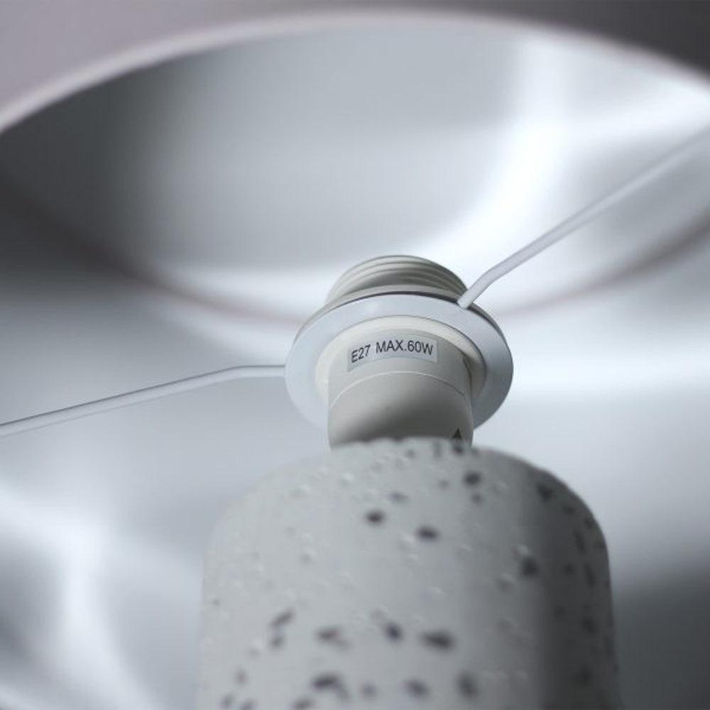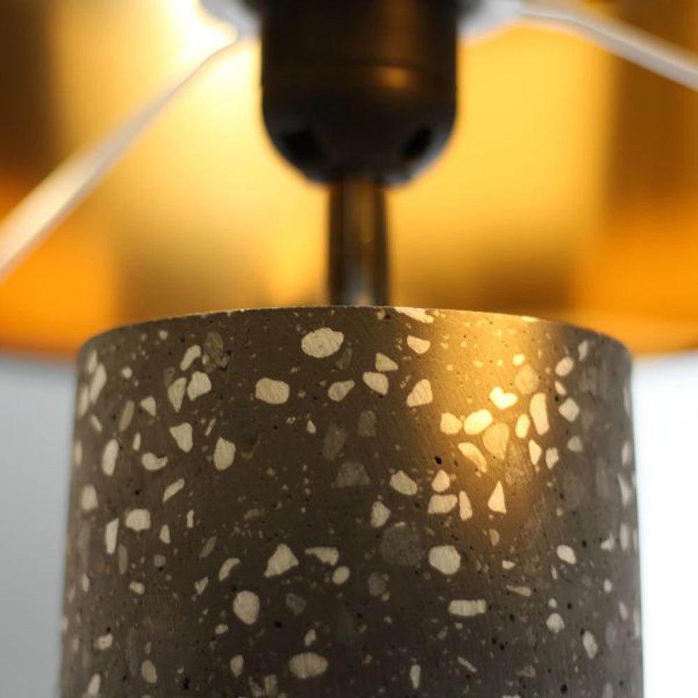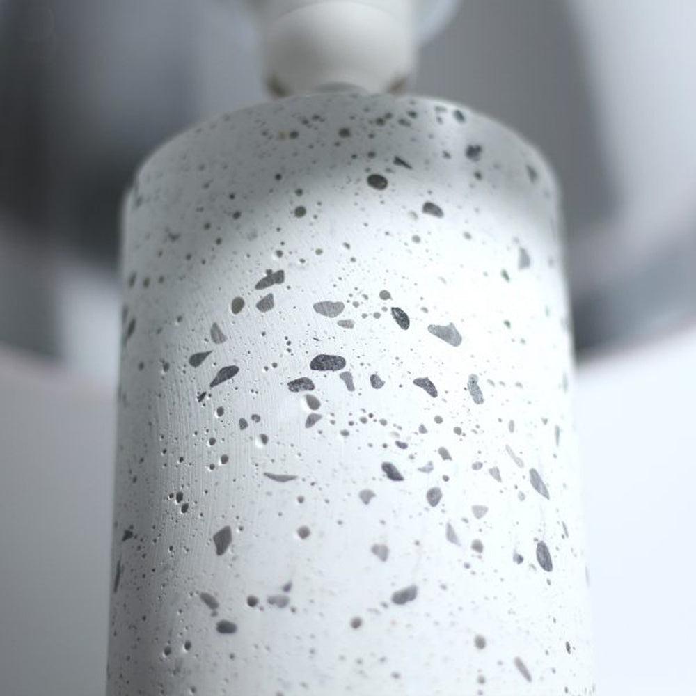 The terrazzo cylindrical base encompasses the industrial feel, with the speckled character of the composite material providing the organic vibe. The simplistic drum shade nicely mixes with the terrazzo base, which is the feature of the Britta Table Lamp. The Britta is available in black, with a black lampshade and grey base, or white with a light pink lampshade and white base.