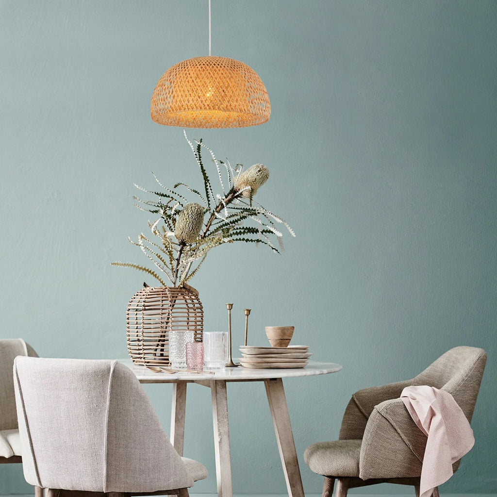 Canasta Dome Pendant Light Small in Natural Bamboo Finish
