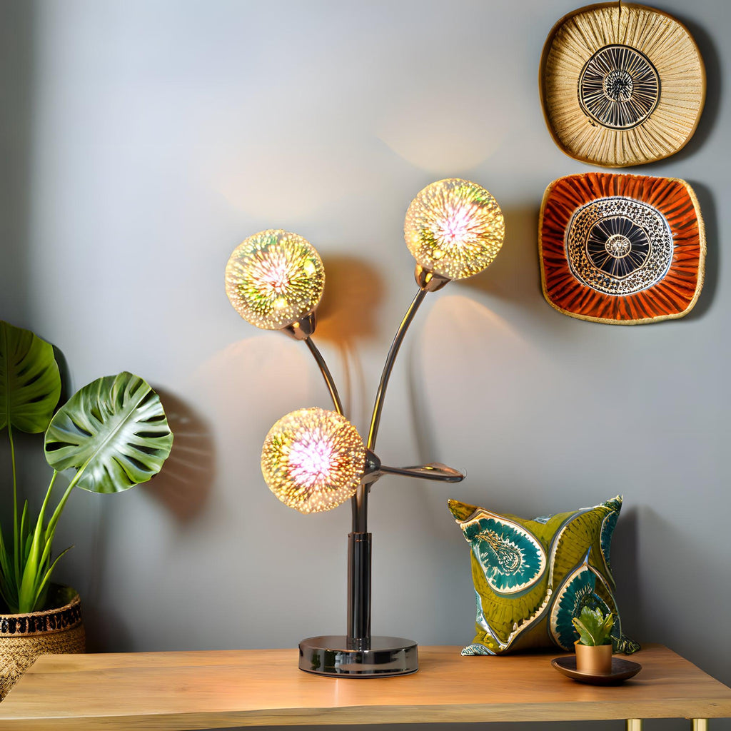 When off, the Candice Table and Floor Lamp have a chrome ball appearance. When switched on, the spheres produce a sparkling glow and appear futuristic to grab the attention of all who view it. The Candice lamp can be used in any room of the house where you wish to have a light with a difference.