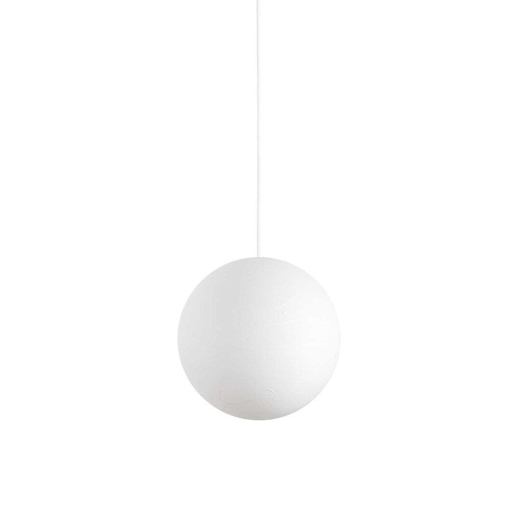 Matt white painted metal frame. Polycarbonate diffuser with paper-effect coating. Fabric covered cable.