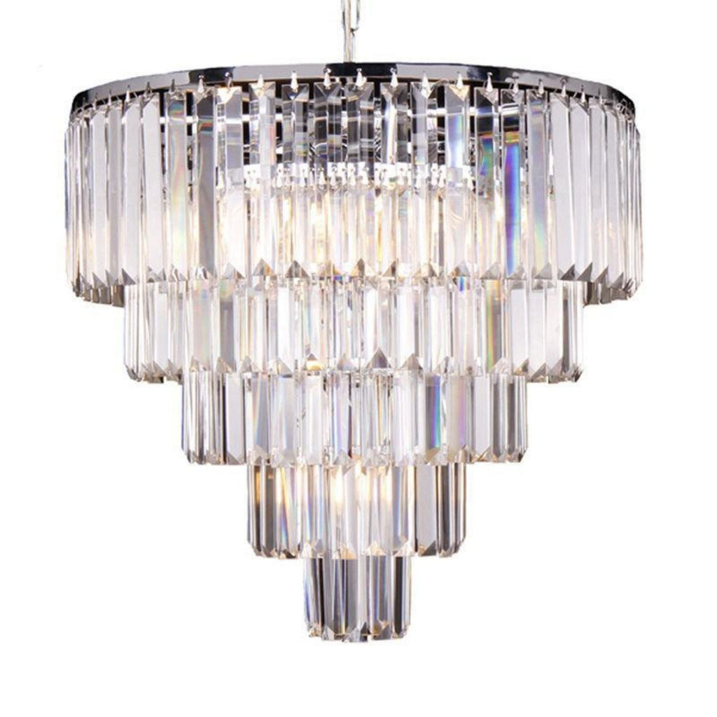 The Celestial Crystal Glass Chandelier is a striking fusion of traditional elegance and modern sophistication. Its elongated crystal prisms are carefully positioned to reflect and refract light, creating a stunning prismatic glow that enriches any interior with depth and luxury. Designed with clean lines and sculptural form, it balances timeless charm with contemporary style, making it an ideal statement piece for a dining room, formal living area, or grand foyer. Available in a range of sizes and finishes, the Celestial offers versatile styling options that adapt beautifully to both classic and modern décor.