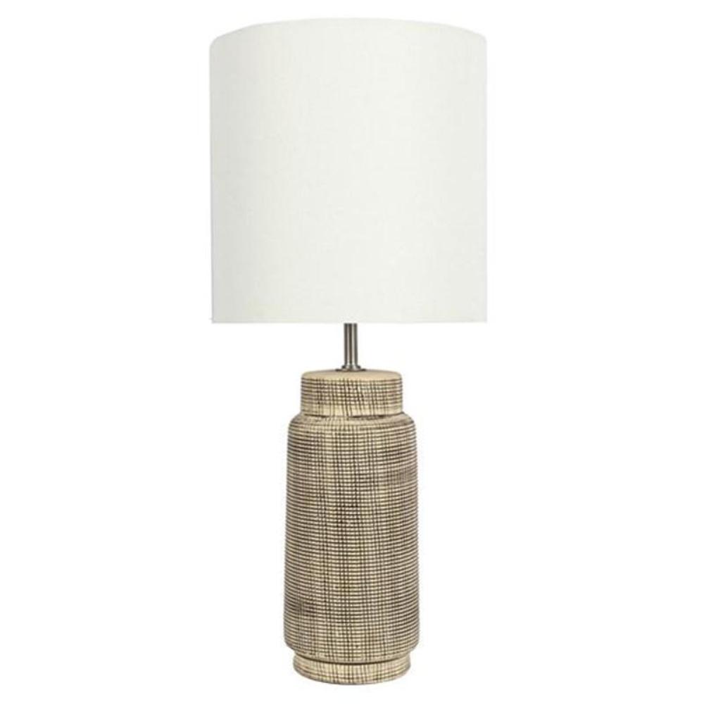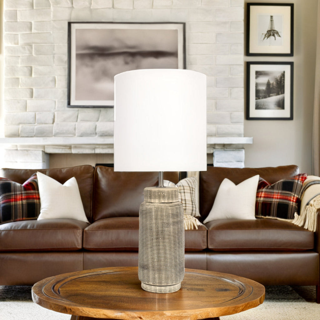 Ceramic Table Lamp With Criss Cross Brown & Black Hatching