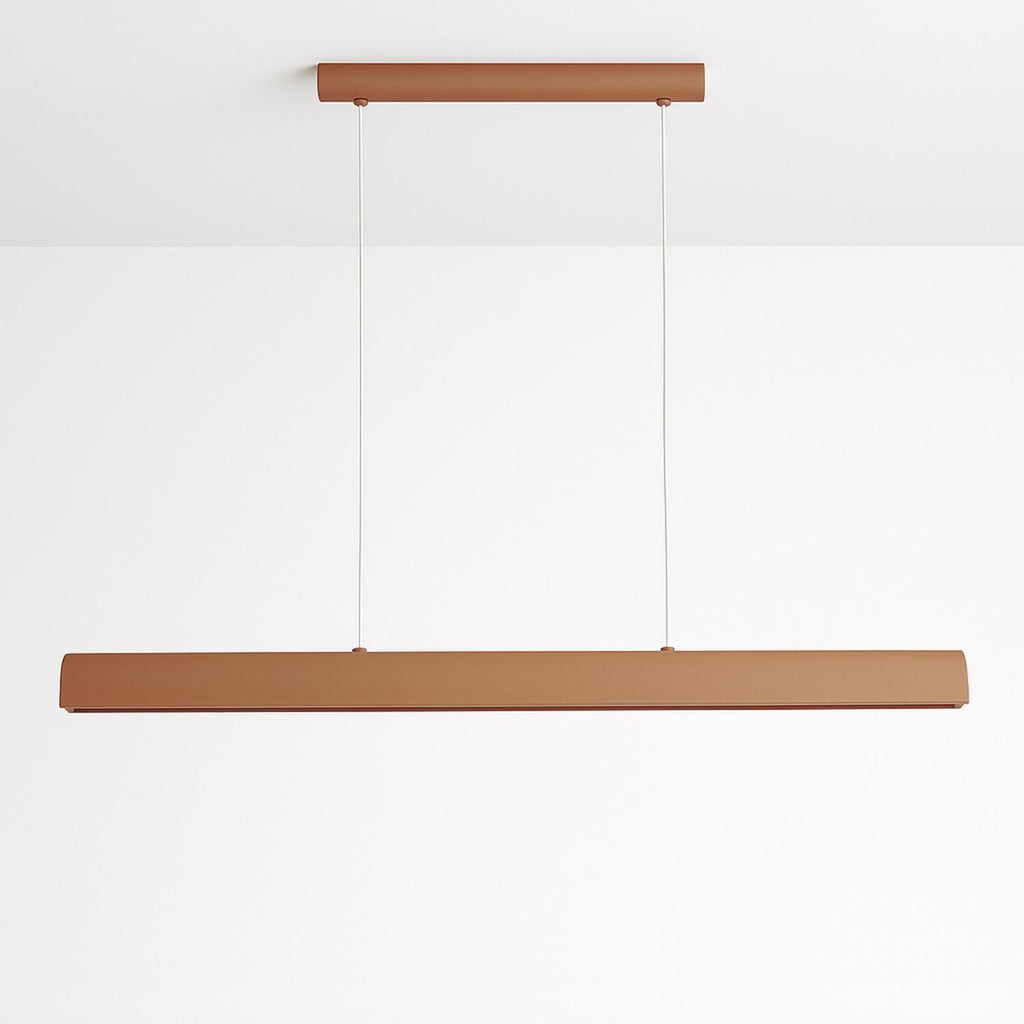 The Clay Linear in Plaster Terracotta brings warmth and character through its earthy tone and refined silhouette. Measuring 1500 mm in width, the elongated form is crafted from plaster and finished in a rich terracotta hue, with a matching canopy and translucent suspension for a cohesive detail. Featuring an integrated CREE LED with selectable colour temperature and dimmable capability, this pendant merges modern performance with timeless texture.