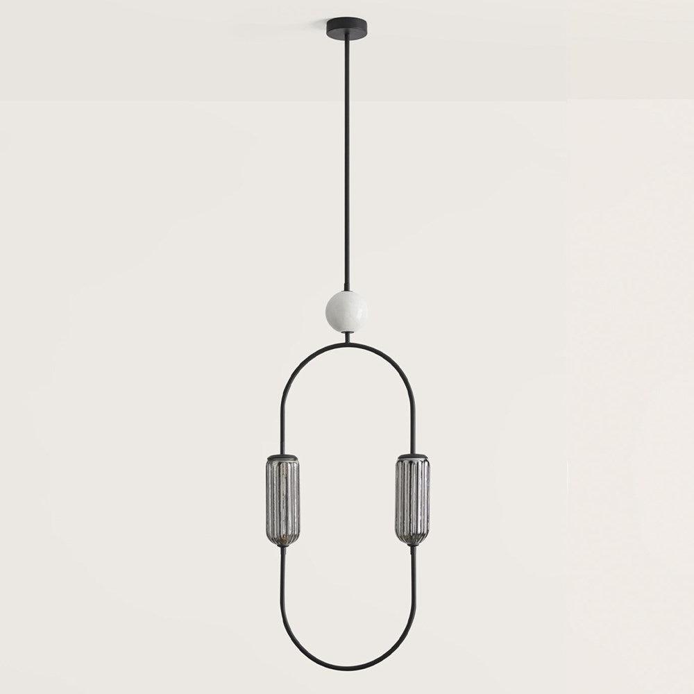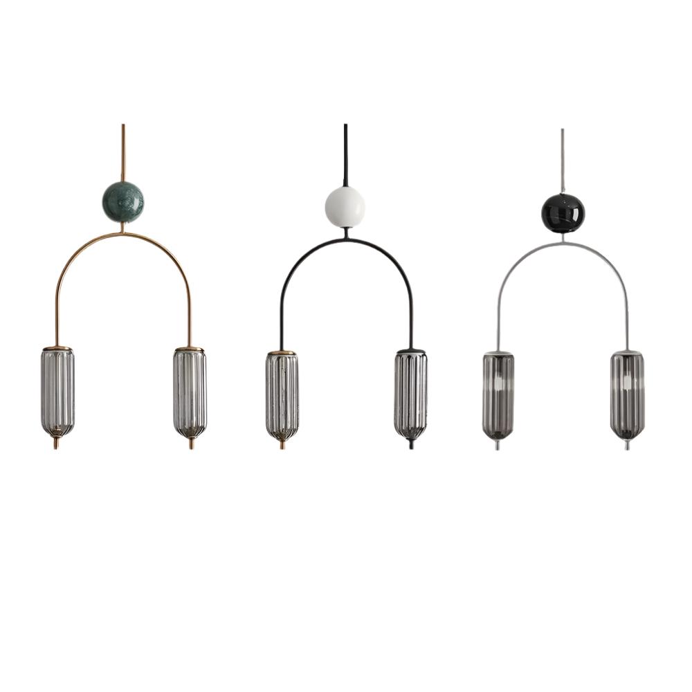 Clip LED Pendant Light 2Lt in Aged Gold/Green Marble, Matt Black/White Marble or Satin Nickel/Black Marble