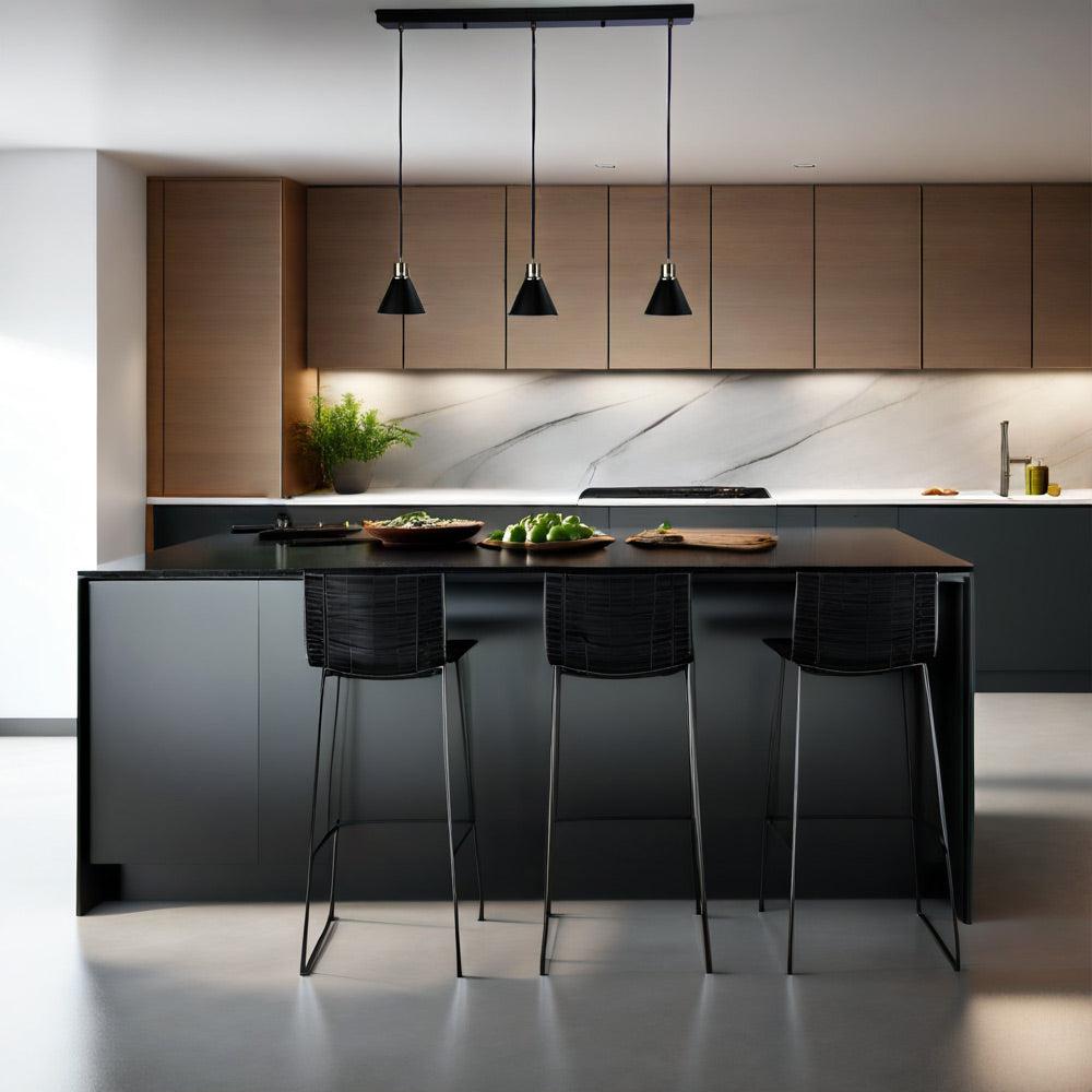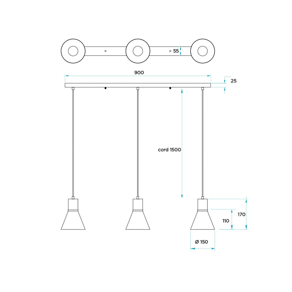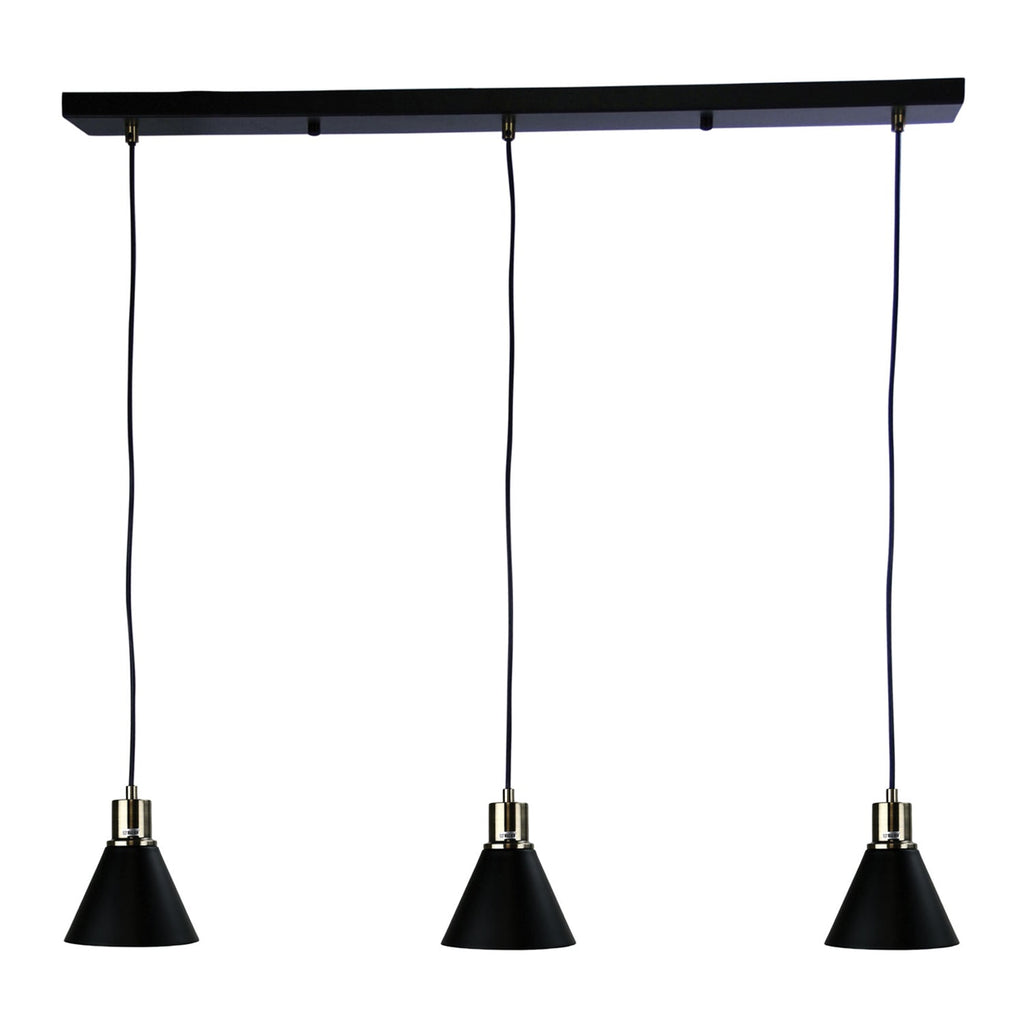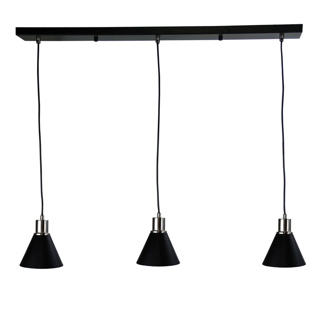 COMO 3 light bar pendant is ideal suspended over a servery, bar or pool table. The bar is 900mm long with a 1500mm suspension (easy to shorten if required). Painted matt black, with antique brass or brushed chrome detailing. Shade inner is white. Also available as a single pendant.