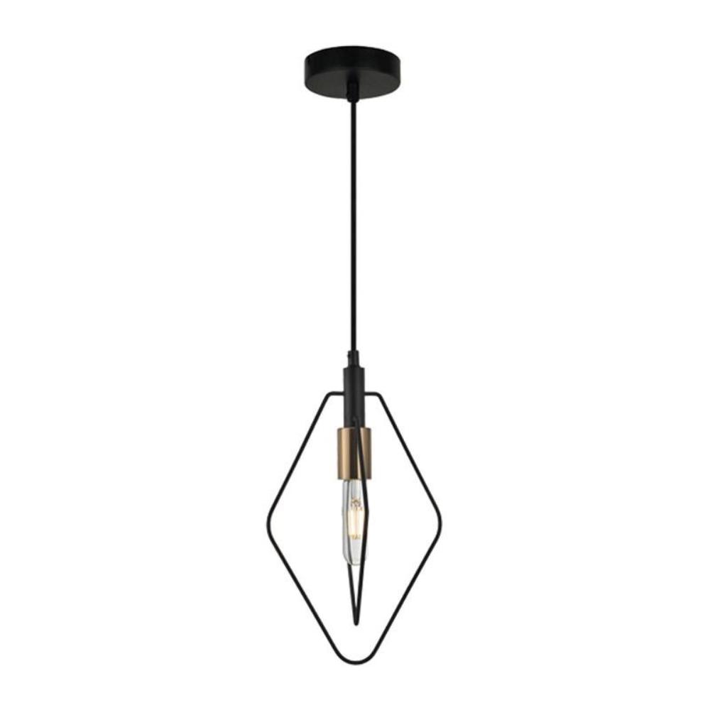 Contour Pendant Light Diamond in Black w/ Antique Brass Highlight