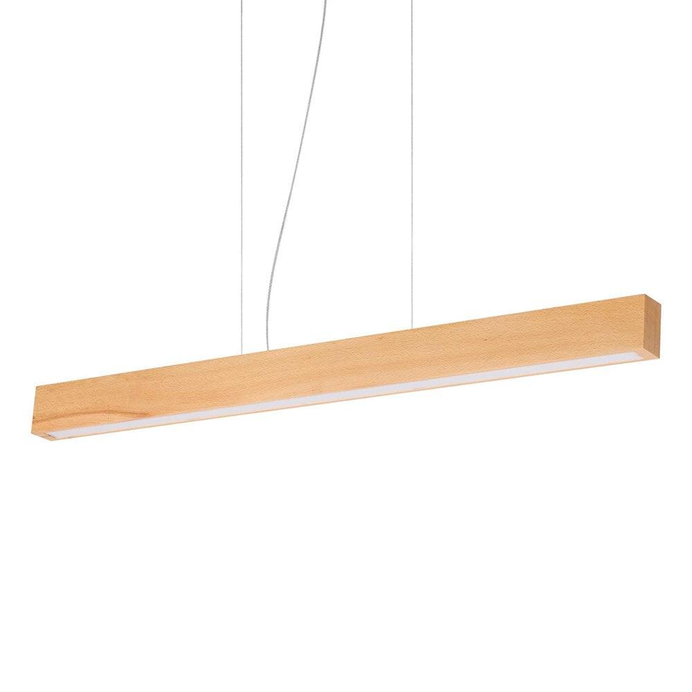 Rosette in matt black painted metal. Light body in natural wood. Satin opal polycarbonate diffuser. Transparent PVC cable.