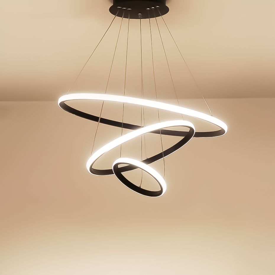 Crown 3 Ring Pendant Light 3000k/5000k in Black, Chrome or Gold