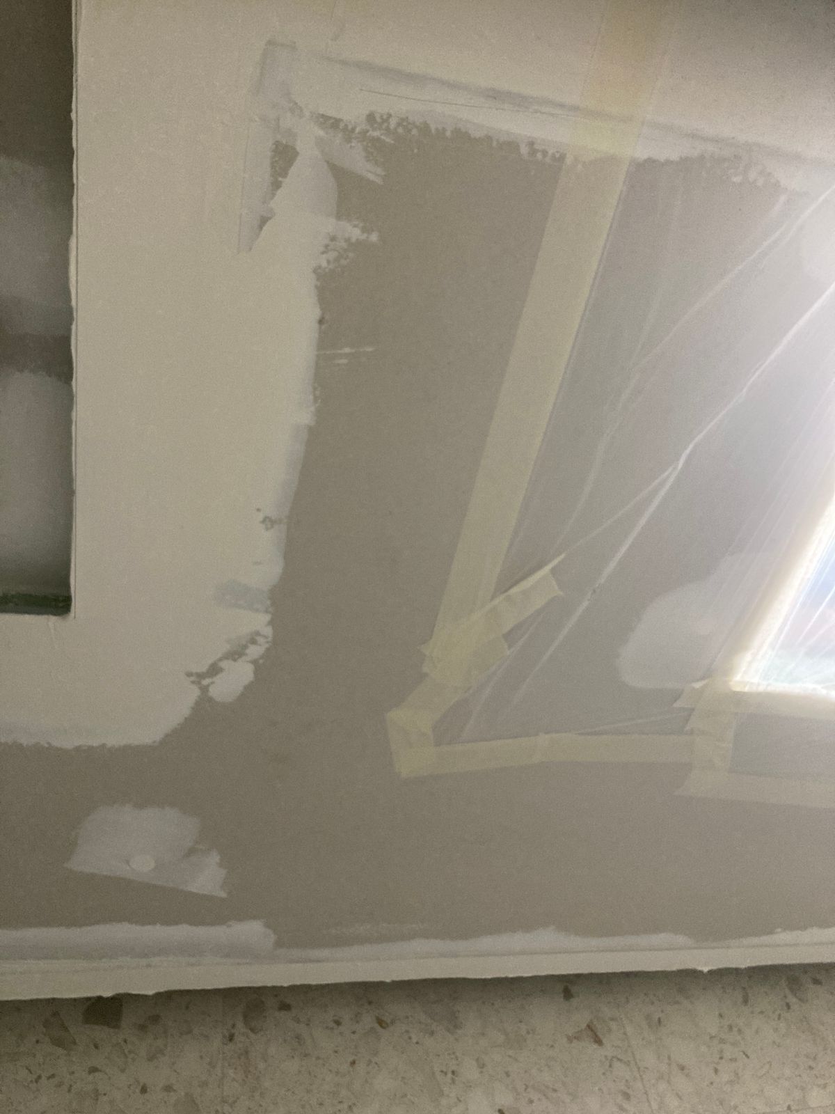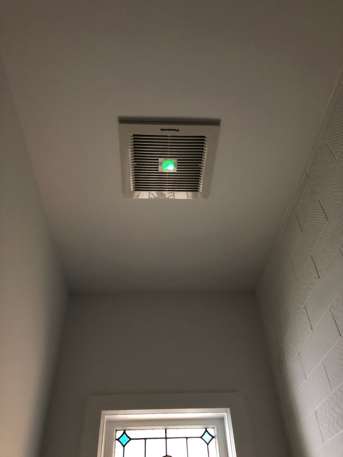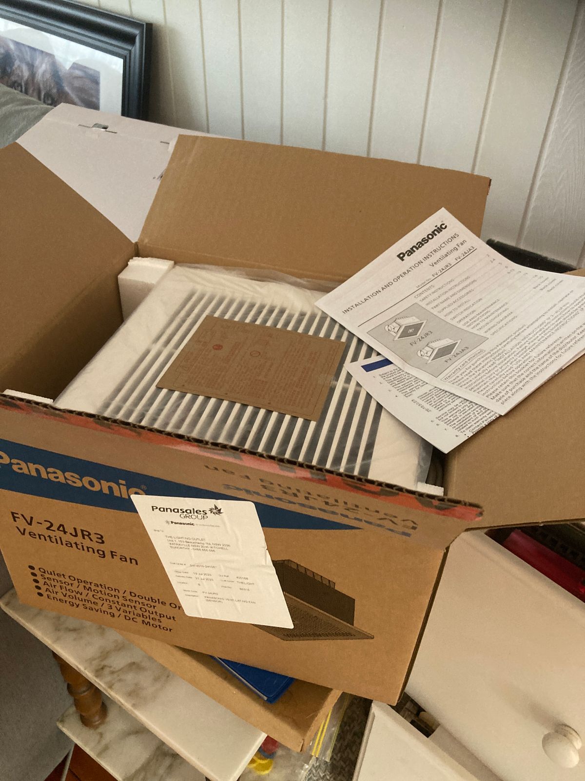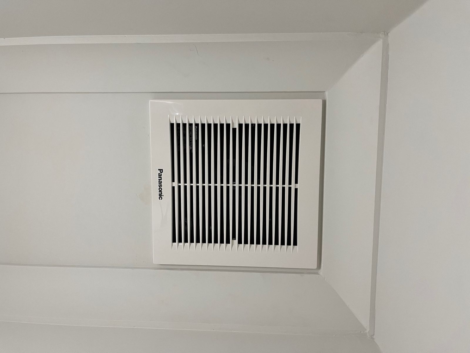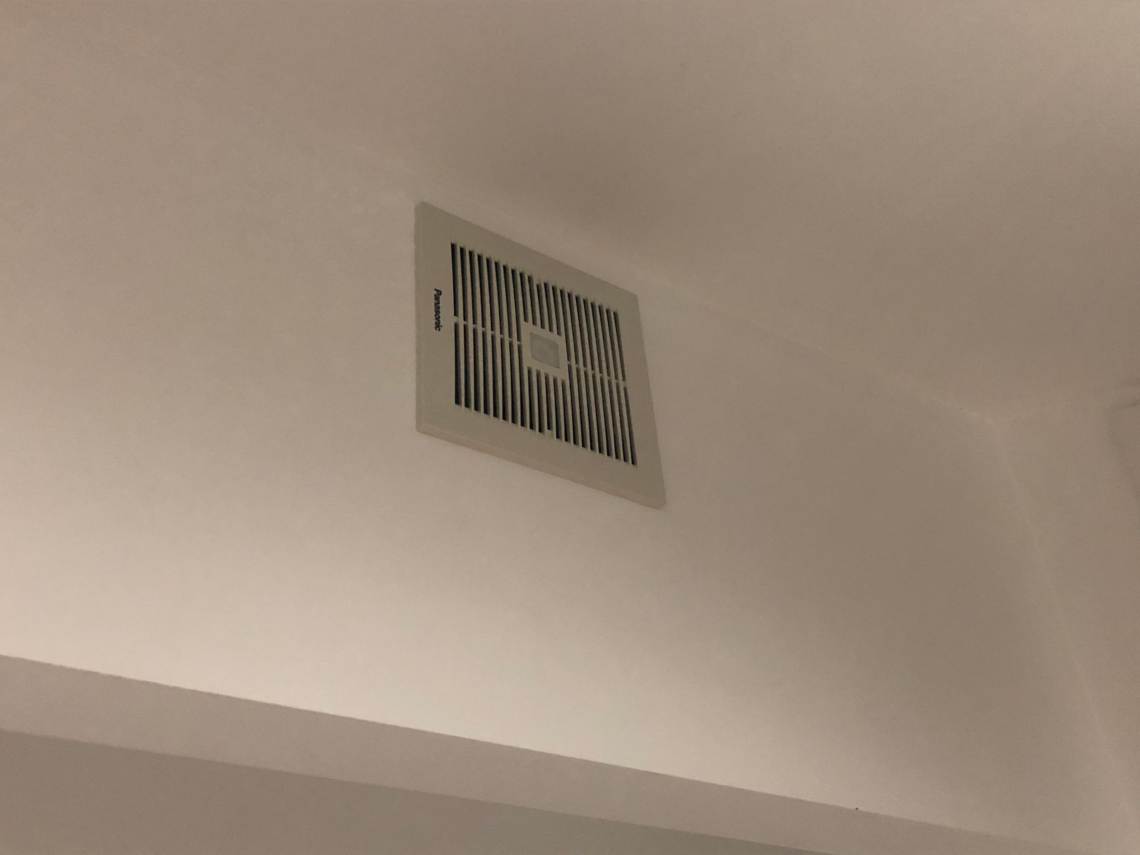 The first pic is of the fan still in the box and the second pic is of where it will be going in the bathroom roof.