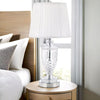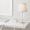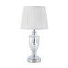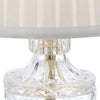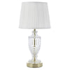 The Debden table lamp makes warm decorative statement. The clear glass base is formed with classical inspiration and is topped with a hand pleated fabric tapered drum shade. This lamp brings a soft glow to your decor and offers perfect ambient lighting.
