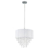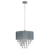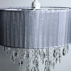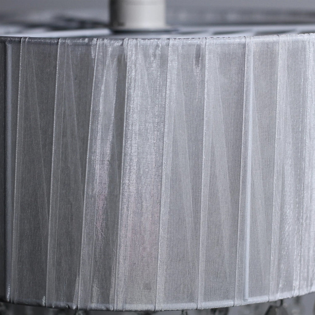 Whether the Delia Chandelier is installed for some bedroom elegance, a bit of glamour for mundane space or as a focal point to an entry hall, it's beautiful design will not disappoint. The grey/white fabric drum shade suits most home decors you choose to add it to, hanging simply yet exquisitely from the ceiling. While the strong metal shade frame ensures it will keep its form over time.