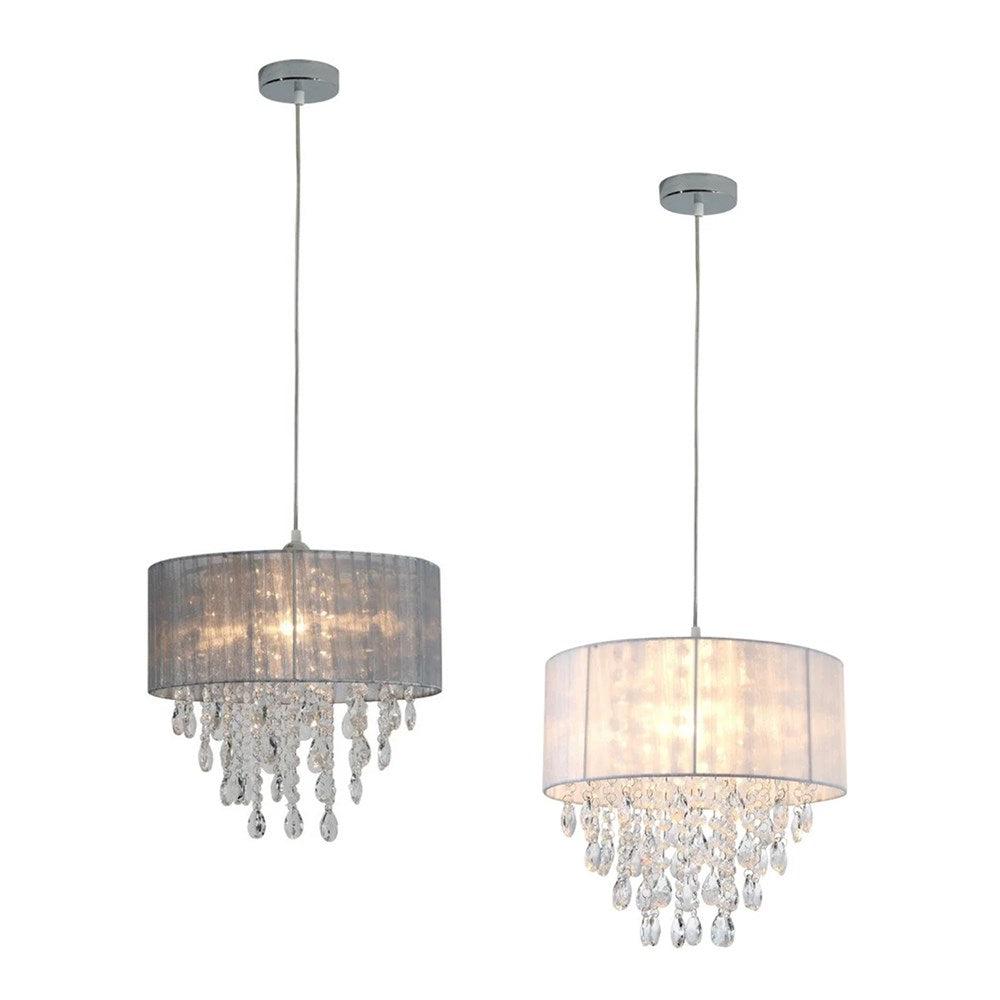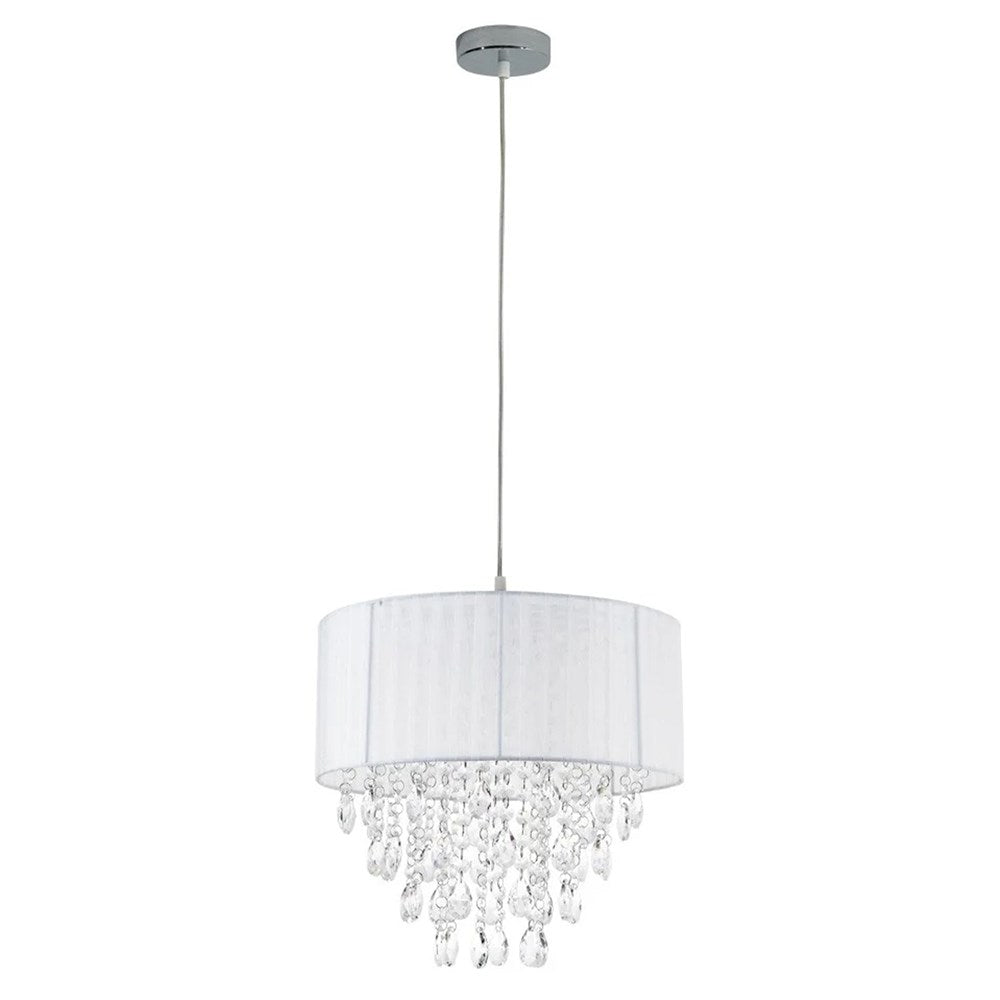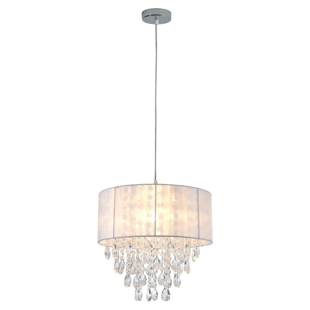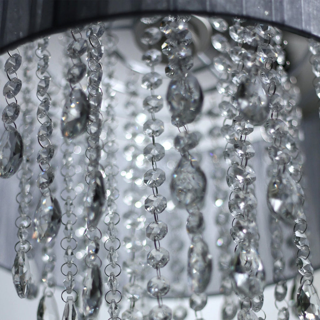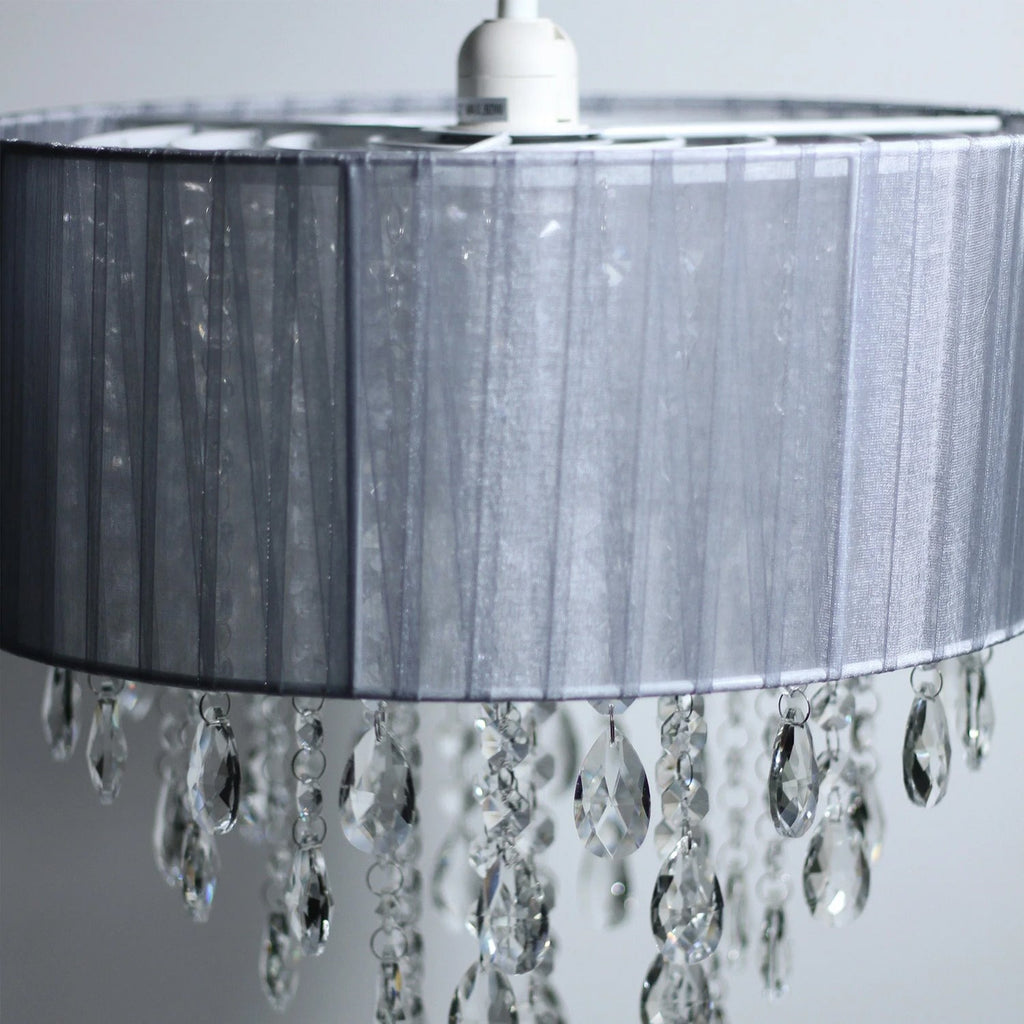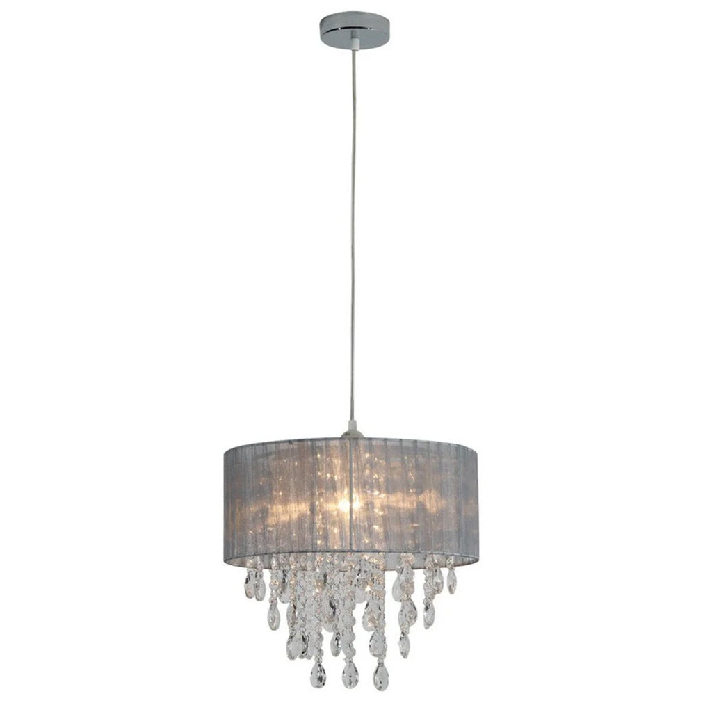 However, the acrylic crystal gems that drop below the shade in a staggered formation add the glitz to the Delia Chandelier. And the good news, only one E27 globe is needed to provide a warm chandelier glow.