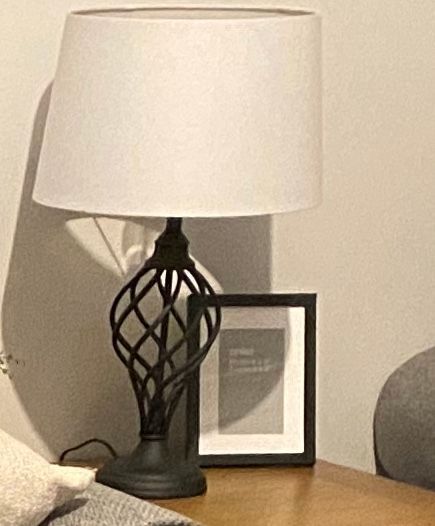 Features a matt black base with white cotton shade. Comes with a black PVC cord with plug. B22 Push Bar bar switch. B22 (bayonet cap) max 60w lampholder which is compatible with LED globes.