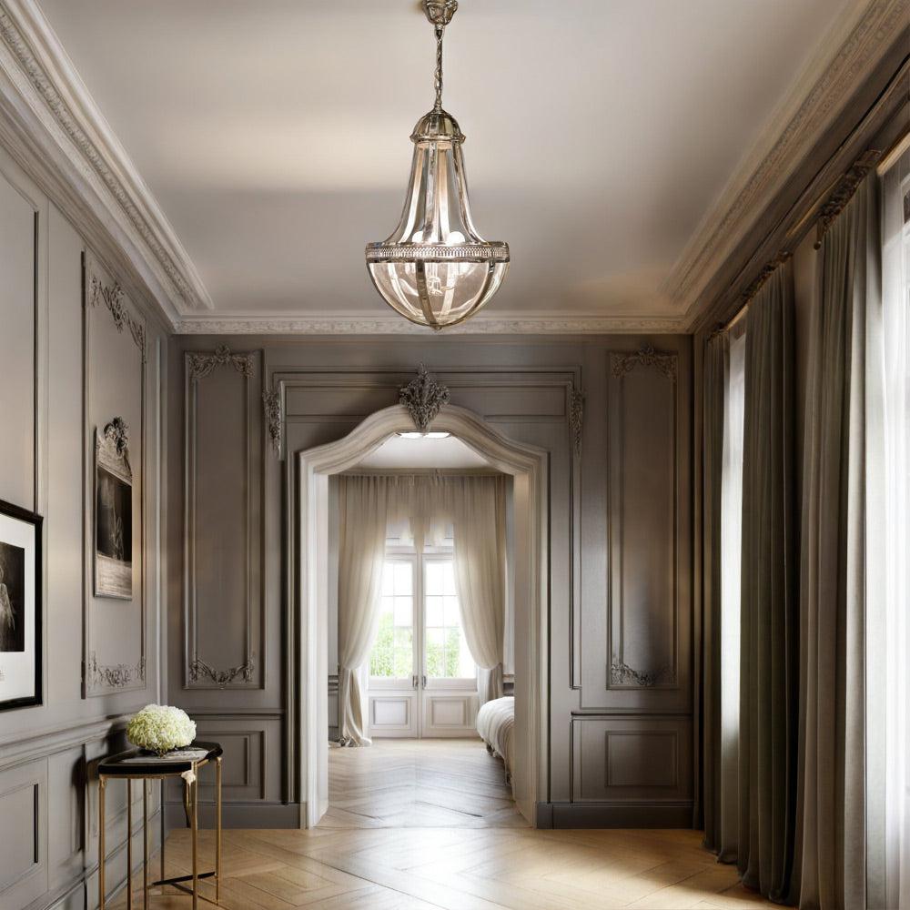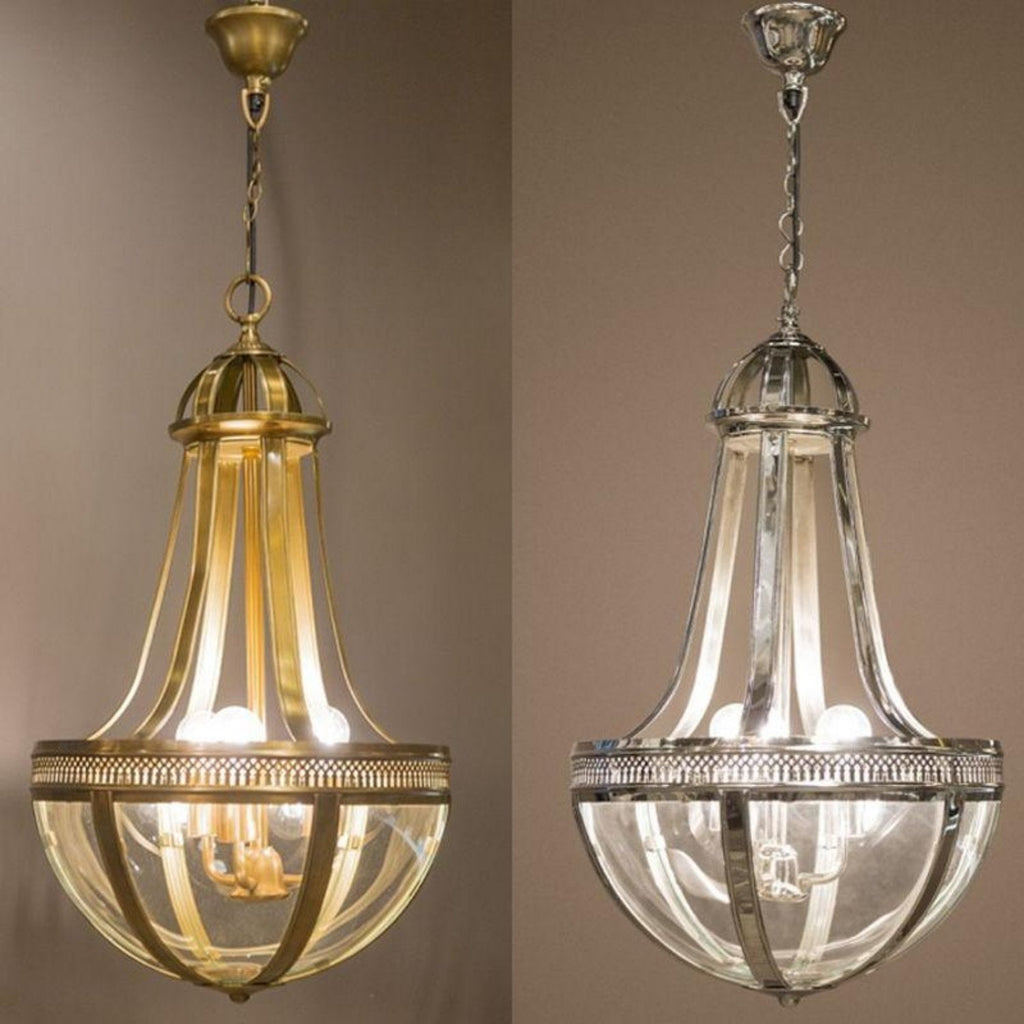 Doma pendant light 3x40w E27 medium in brass or nickel.