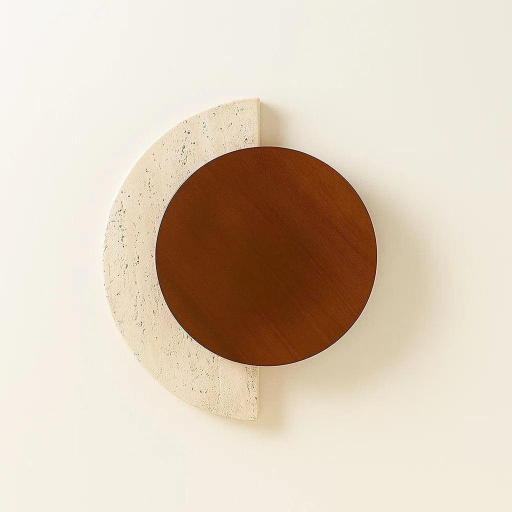 Dramatic yet tranquil, Eclipse explores the interplay of light, shadow, and material. Each piece pairs natural stone with warm walnut detailing, embodying the balance between geometry and texture. The circular form evokes celestial movement, a soft, glowing disc that transforms walls into sculptural compositions.