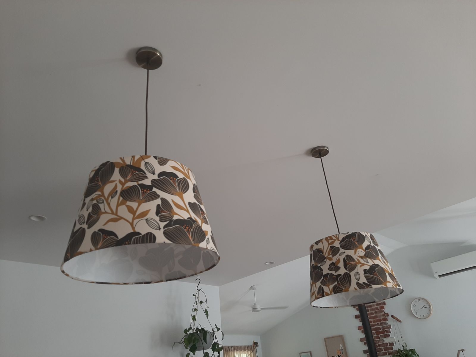 Looks as described with good finish, apart from the ceiling rose which is made from the thinnest material possible. It can be seen distorting when tightening the fixing screws on the bracket.