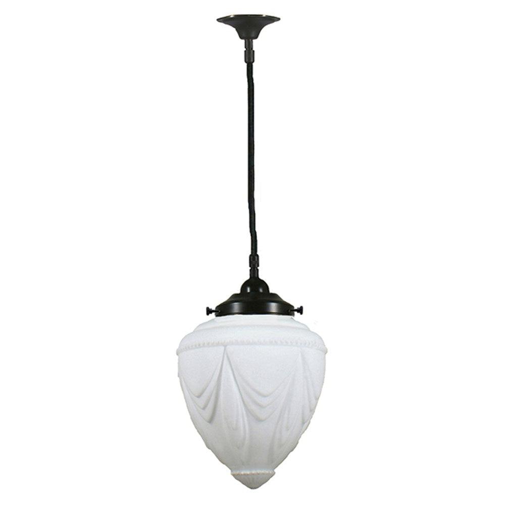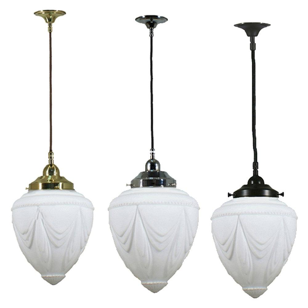 Empire 8" Cloth Cord Pendant Light in Brass, Chrome, Patina Black with Opal Matt Glass
