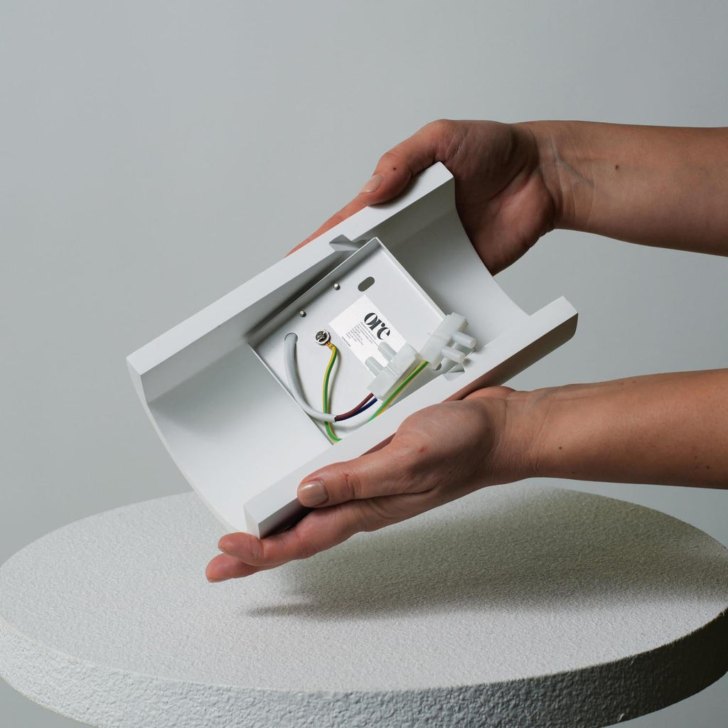 The Curved Wall Light can blend seamlessly into your walls or be styled as a bold architectural feature. Light spills softly above and below, adding quiet drama to any space. Its G9 lamp source allows for LED compatibility and low-heat operation. All components are thoughtfully selected for long-term use and minimal waste, and the piece ships in recyclable, low-impact packaging.