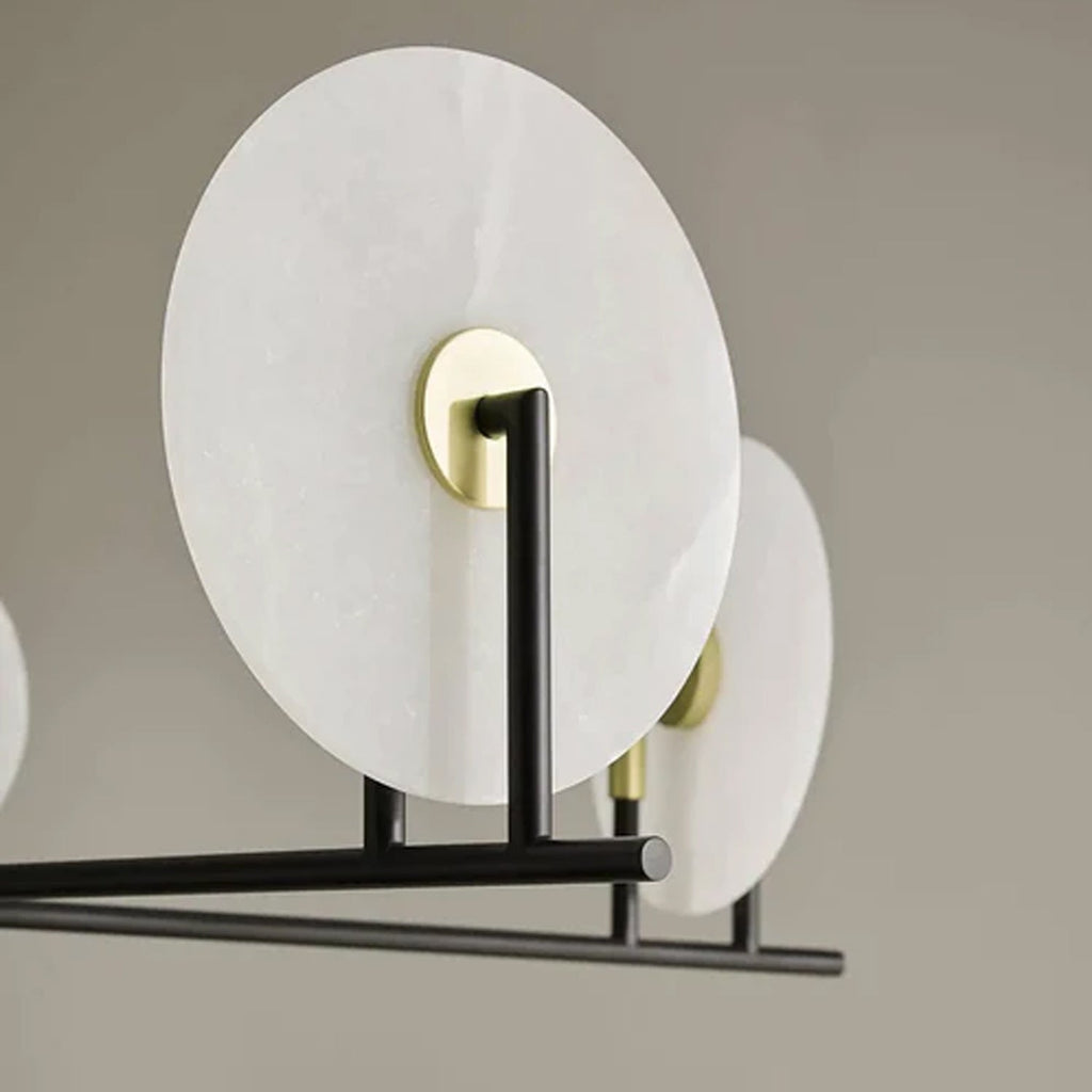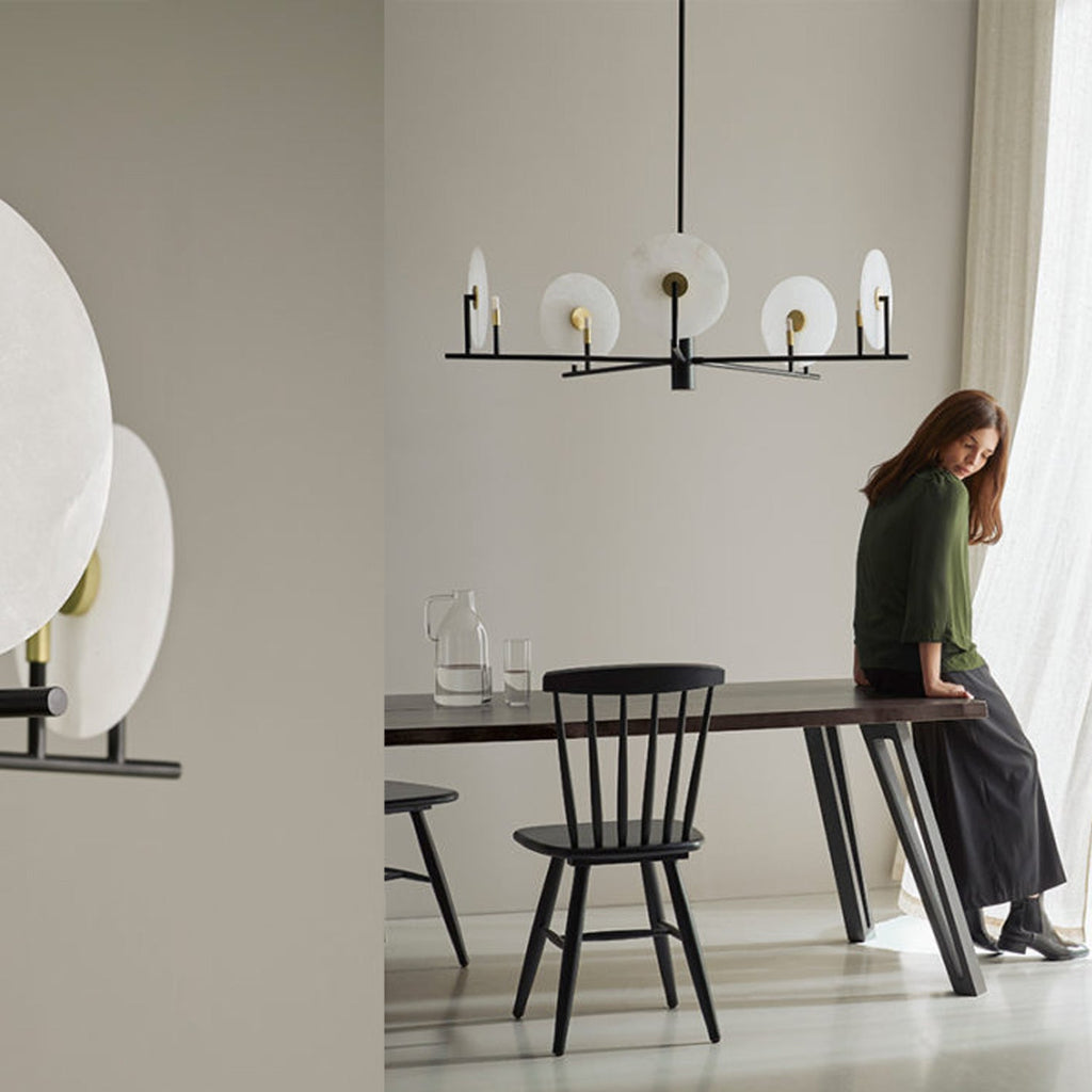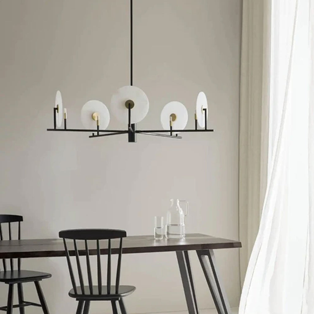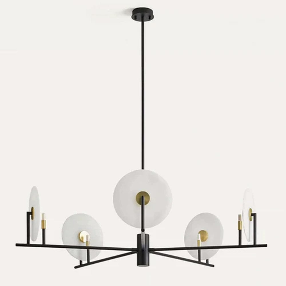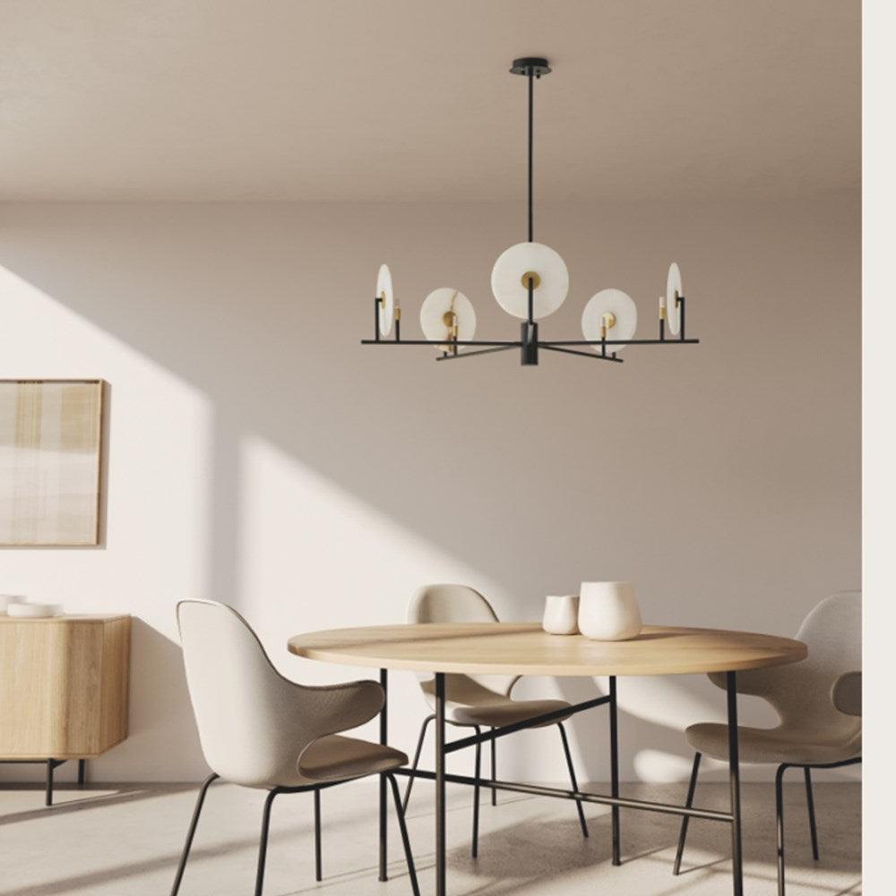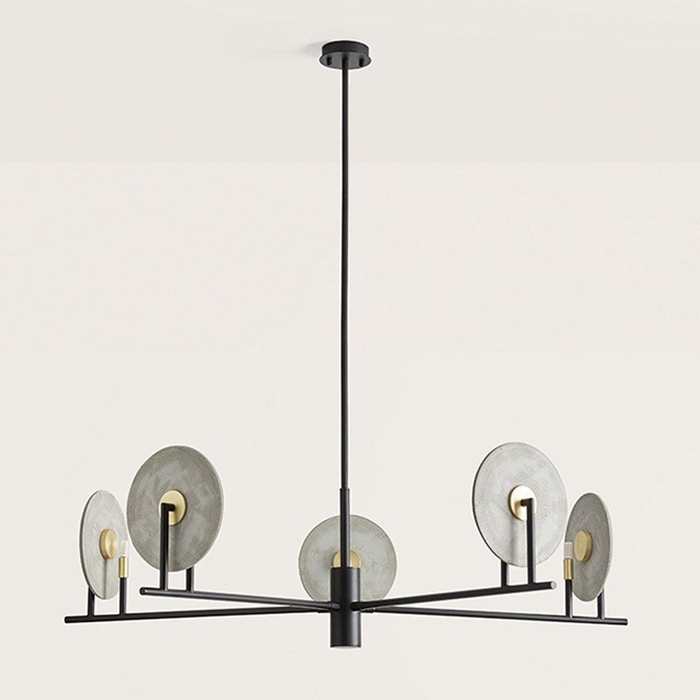 Erto Pendant Light 5lt in Matt Black and Matt Brass w/ Ceramic, Metal, Striped Metal, Glass or Alabaster Disc