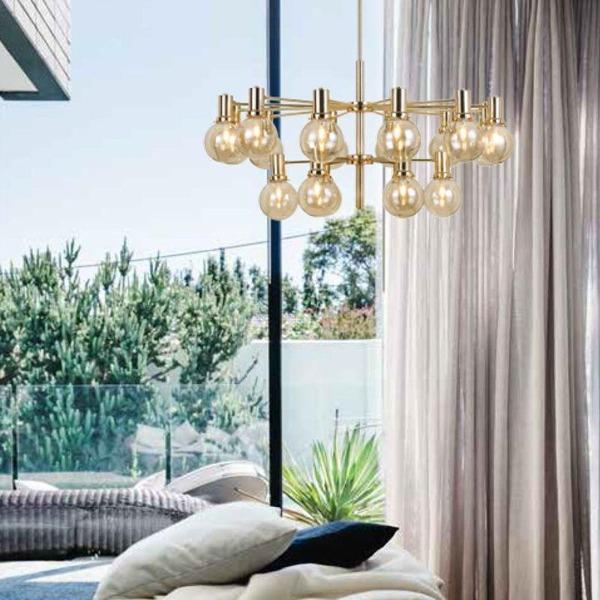 Escoda Pendant Light 18xE14 in Gold Matt/Amber or Black/Smoke