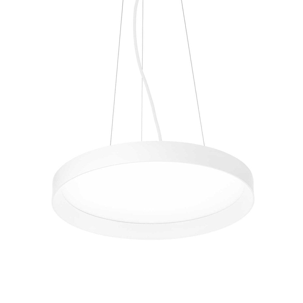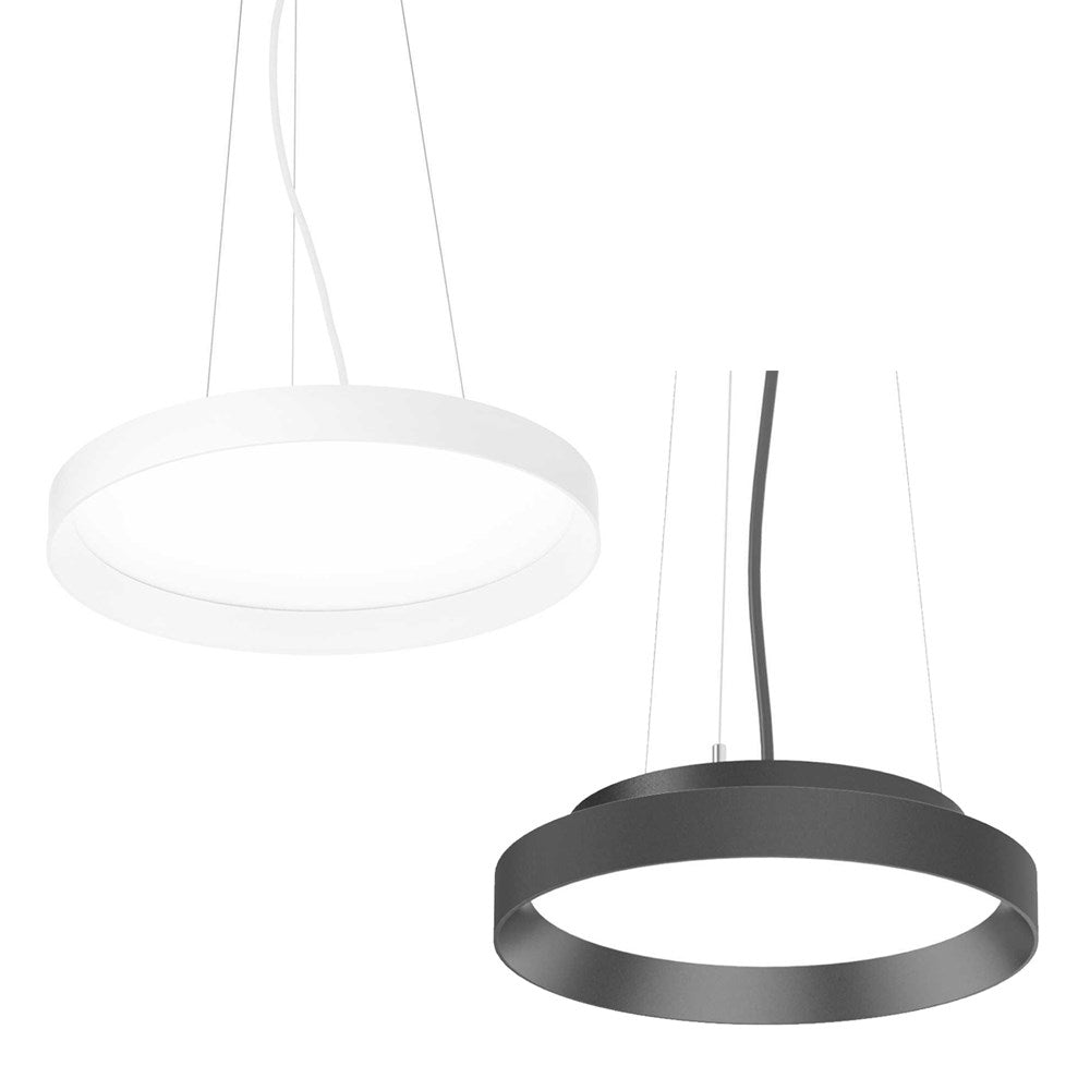 Circular LED suspension lamps available in four different diameters (350 mm, 450 mm, 600 mm, 900 mm) as well as in the SLIM variant with a more compact height. Light body in powder-coated aluminium.