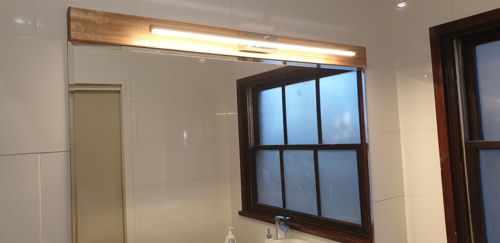 Perfect for the spot I wanted above the bathroom mirror. Has a switch that is set at installation to choose one of 3 colour options from cool daylight to warm.