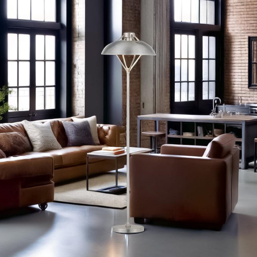 FORGE-FL floor lamp Series features a unique industrial forged metal appearance that offers a perfect solution that complements modern metal interior decors. Ideal as a feature lamp in living rooms and bedrooms. Antique Silver metalware finish. Part of a family of a matching pendant, table lamp and floor lamp