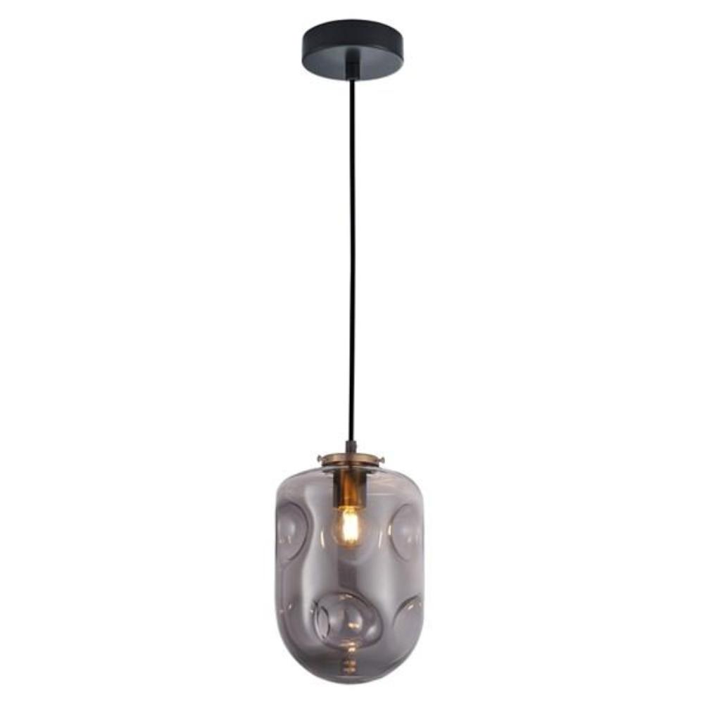 Fossette Indoor Glass Pendant Light Dimpled Smoke Oblong w/ Antique Brass