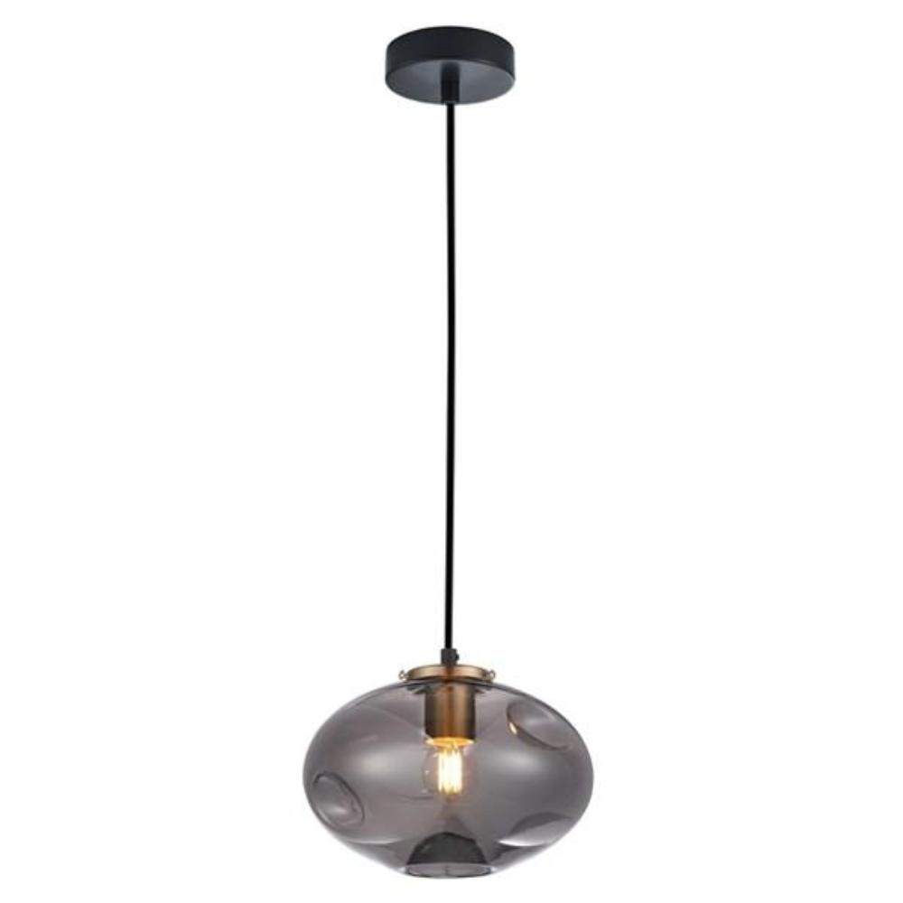 Fossette Indoor Glass Pendant Light Dimpled Smoke Oval w/ Antique Brass