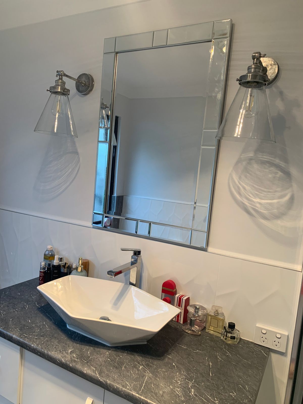Great looking lights. I love thé hand blown effect by the imperfections in the glass shades. I also love the old world antique look in the lights itself. Perfect in my bathroom